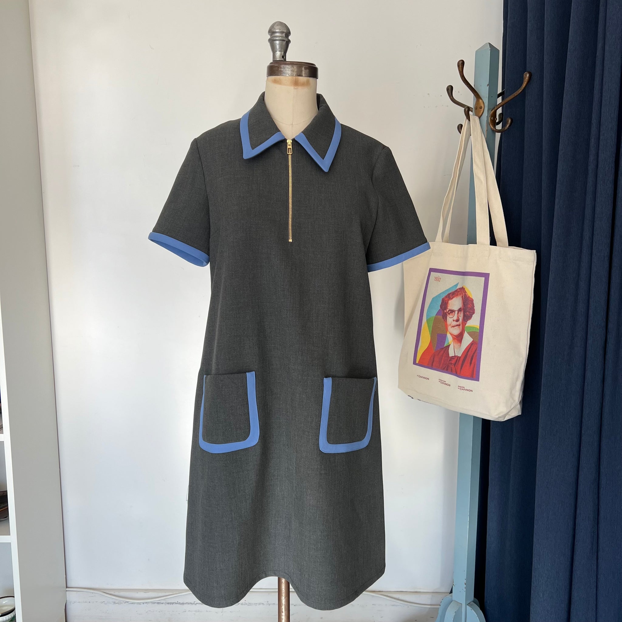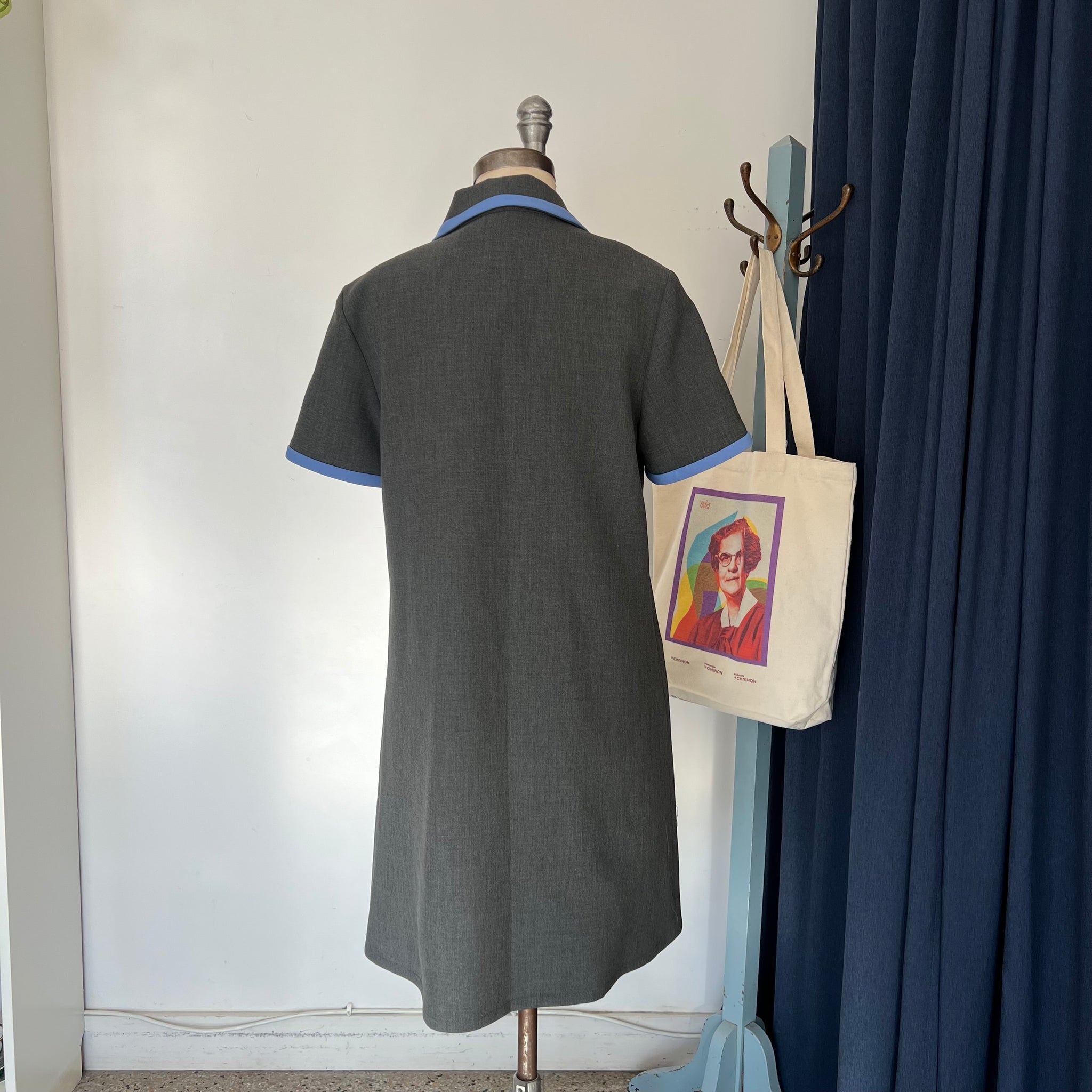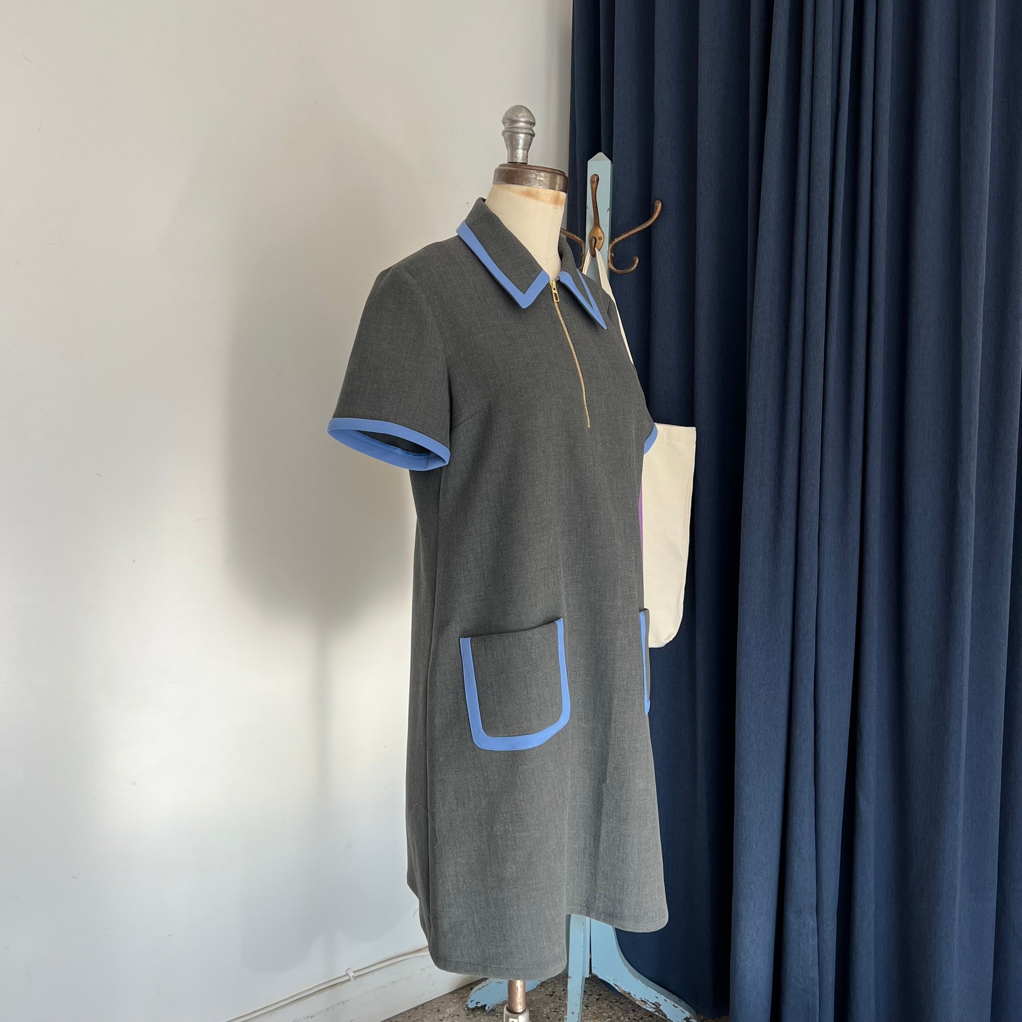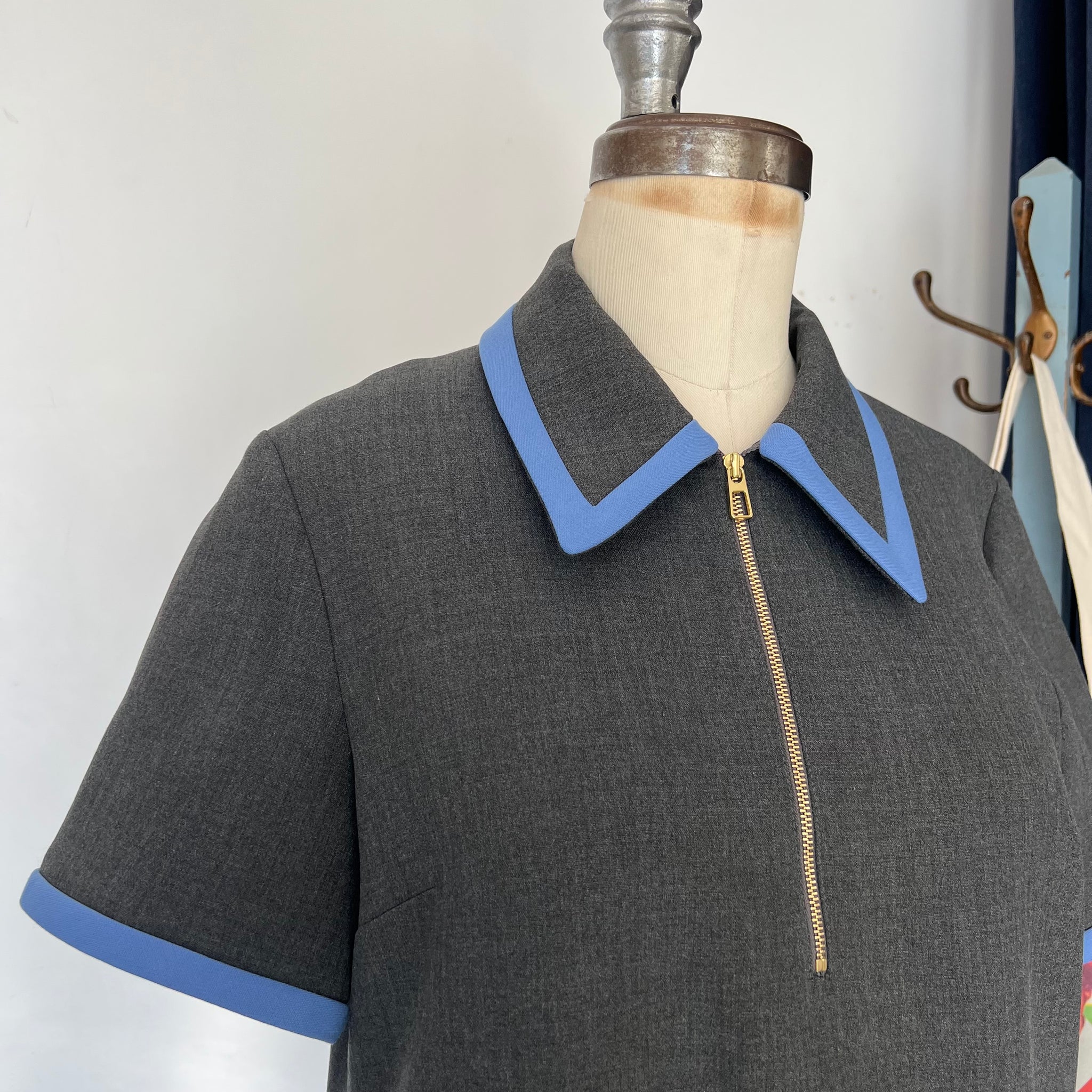 Magnifique robe de la marque Tara Jarmon modèle Rubina. Cette robe courte en denim brut possède une coupe droite, un col chemise, des manches courtes et deux poches plaquées qui sont soulignés par un empiècement ton sur ton. Elle se ferme au col par un zip doré. D'une valeur de 575$.