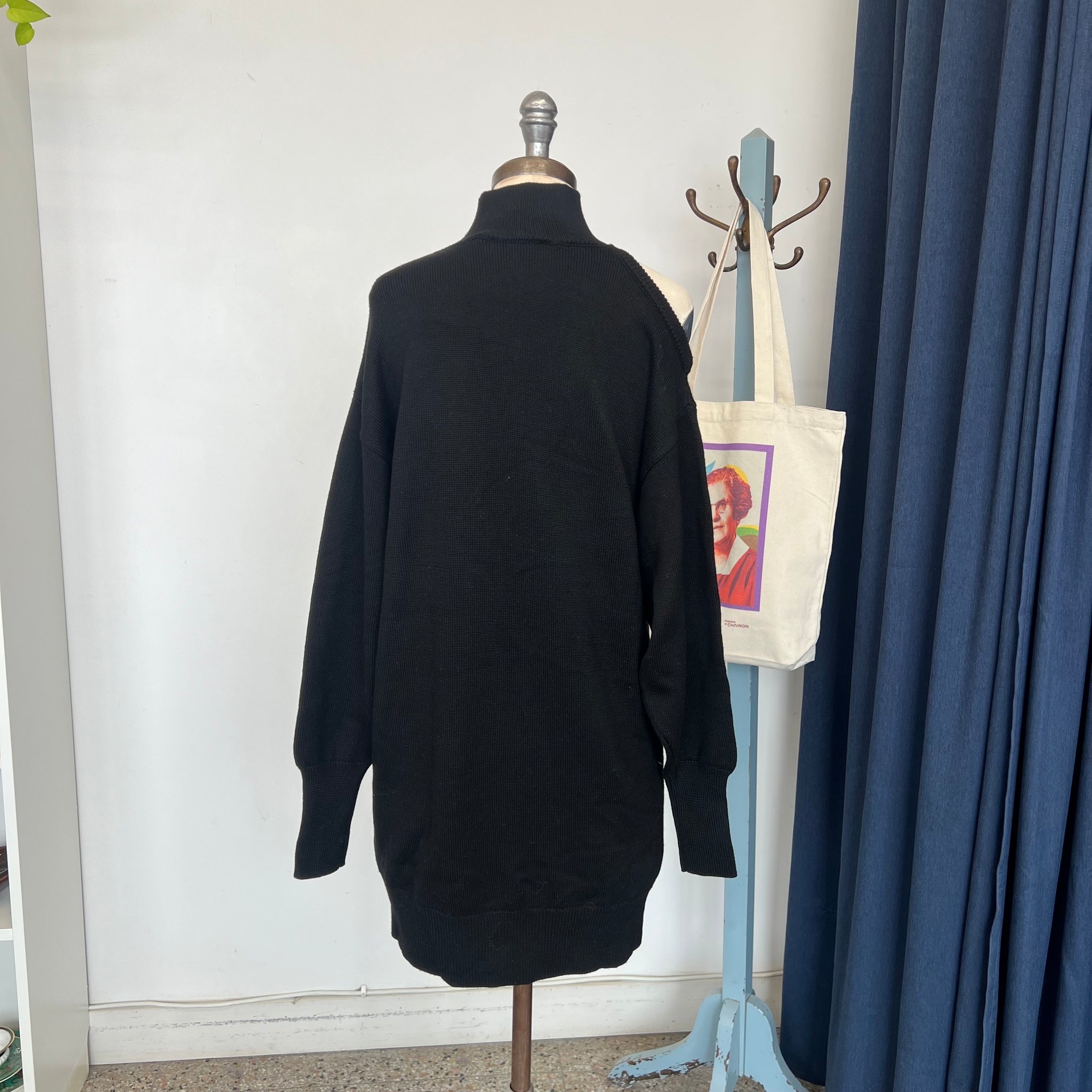 Robe tunique en tricot de laine de la marque Nude. Épaule découverte et col roulé. D'une valeur de 825$.