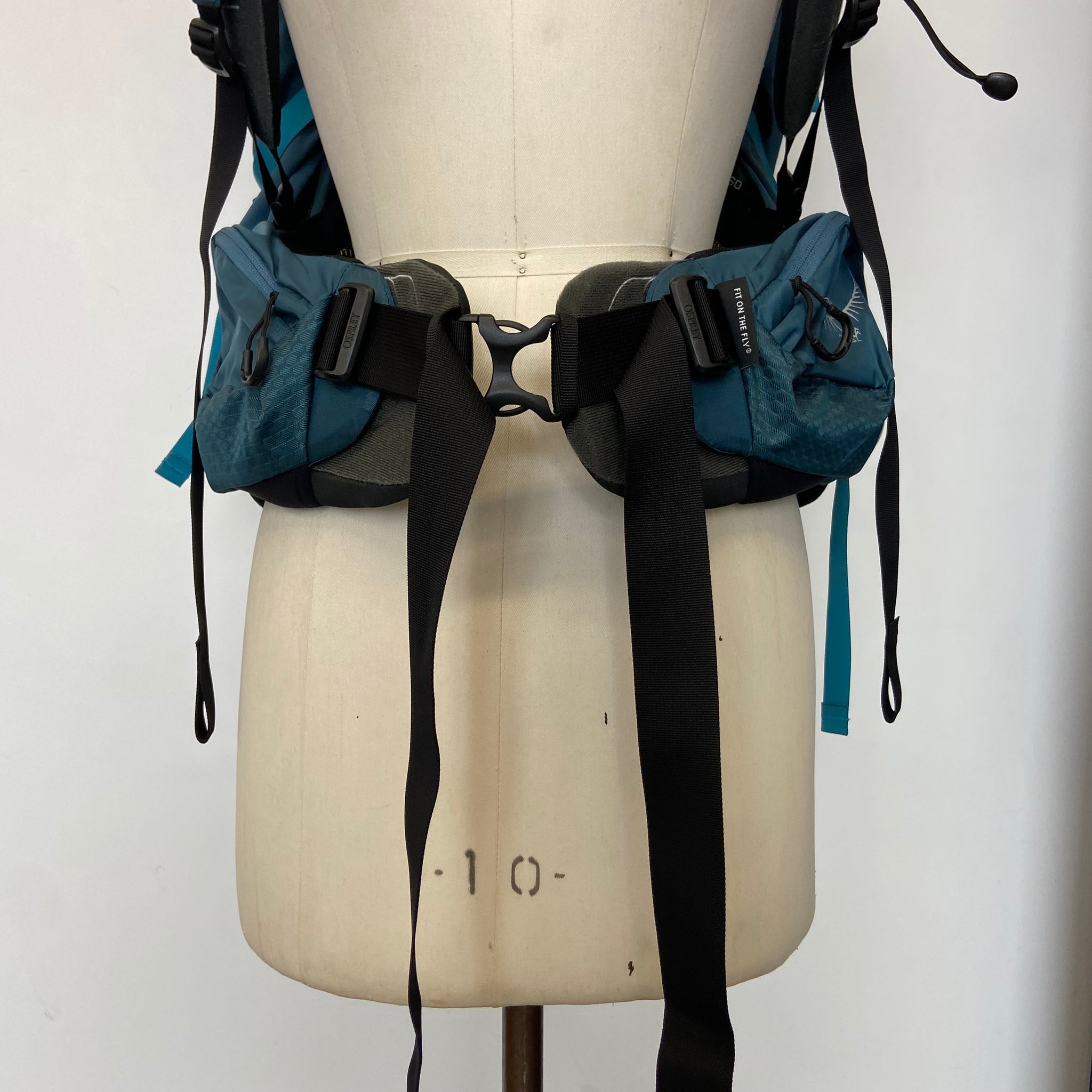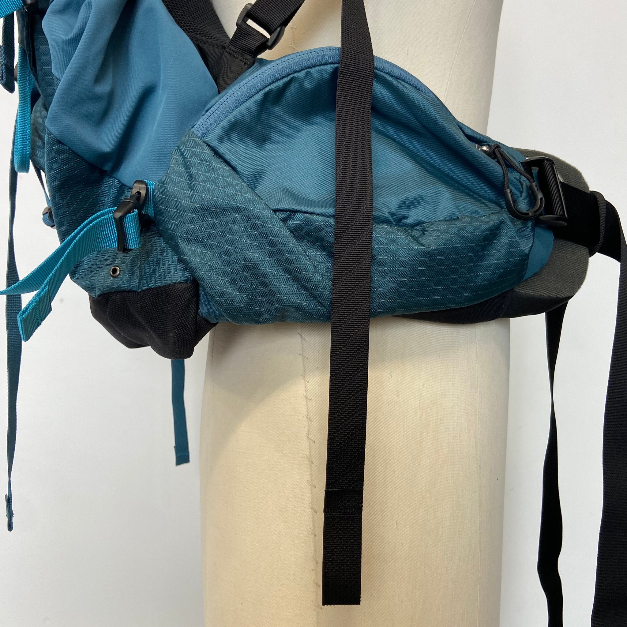 - Point de vue rangement, ce ne sont pas les possibilités qui manquent : poches dans la ceinture de hanches, poches latérales en mesh extensible, manchon pour poche à eau, poches zippées dans le rabat ou encore pochette frontale extensible, tout y est.