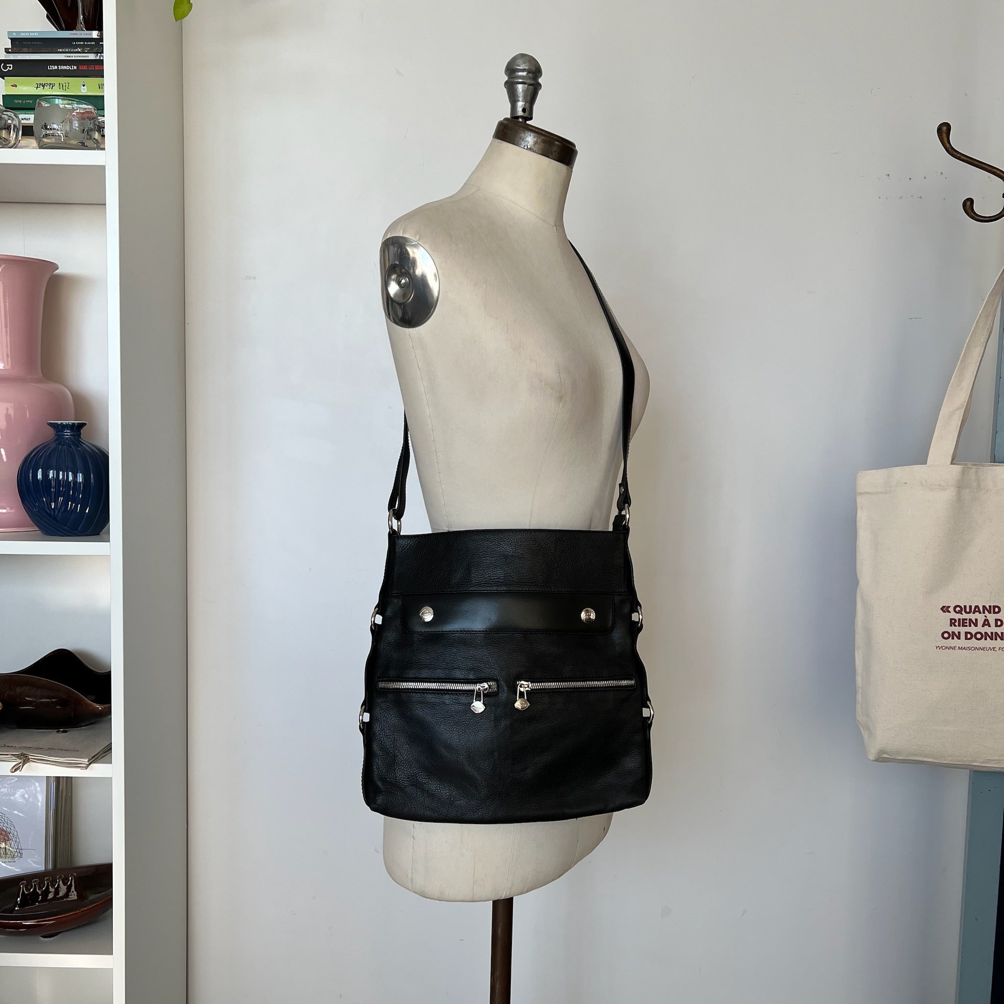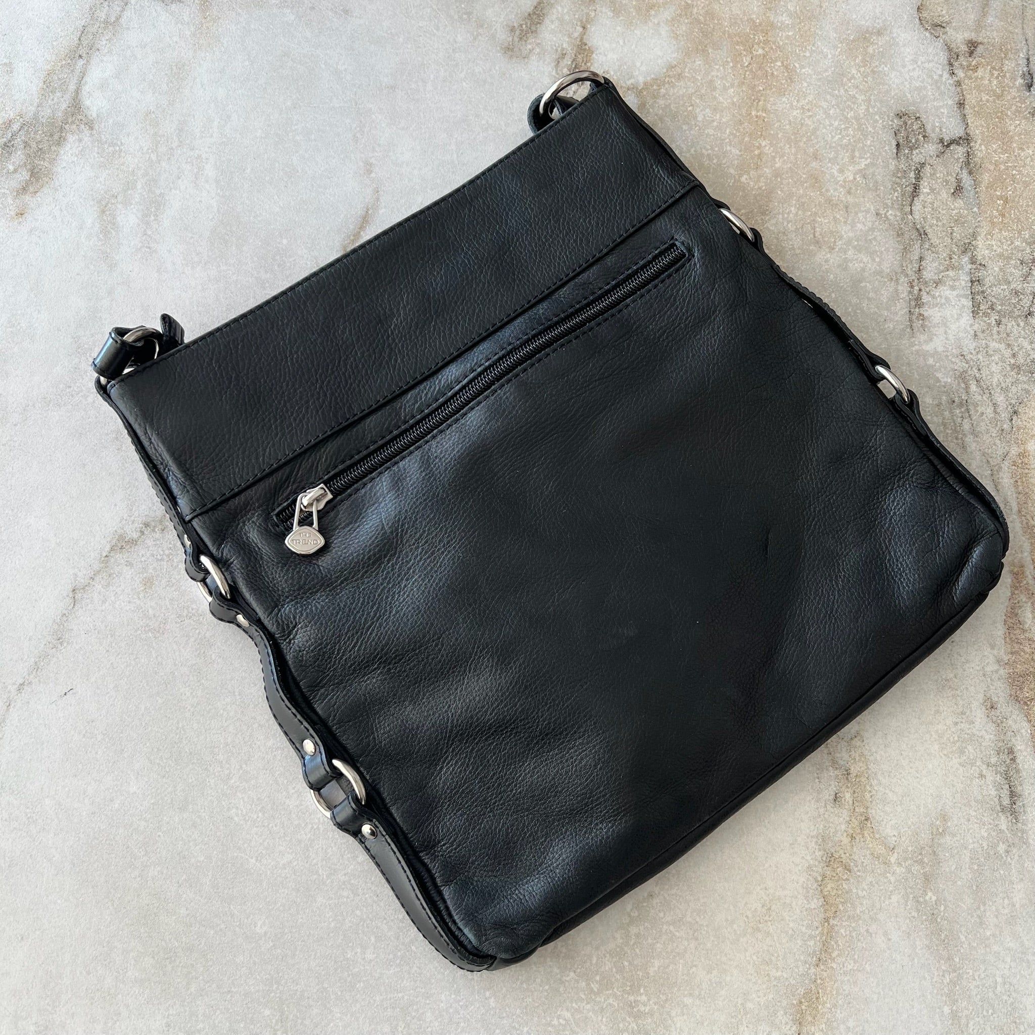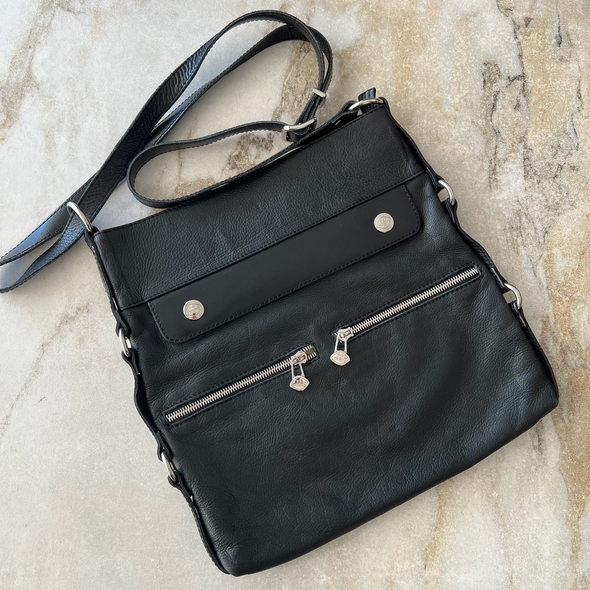 Sac à main bandoulière en cuir The Trend. Peu se porter en bandoulière ou avec la corde raccourcie à l'épaule.