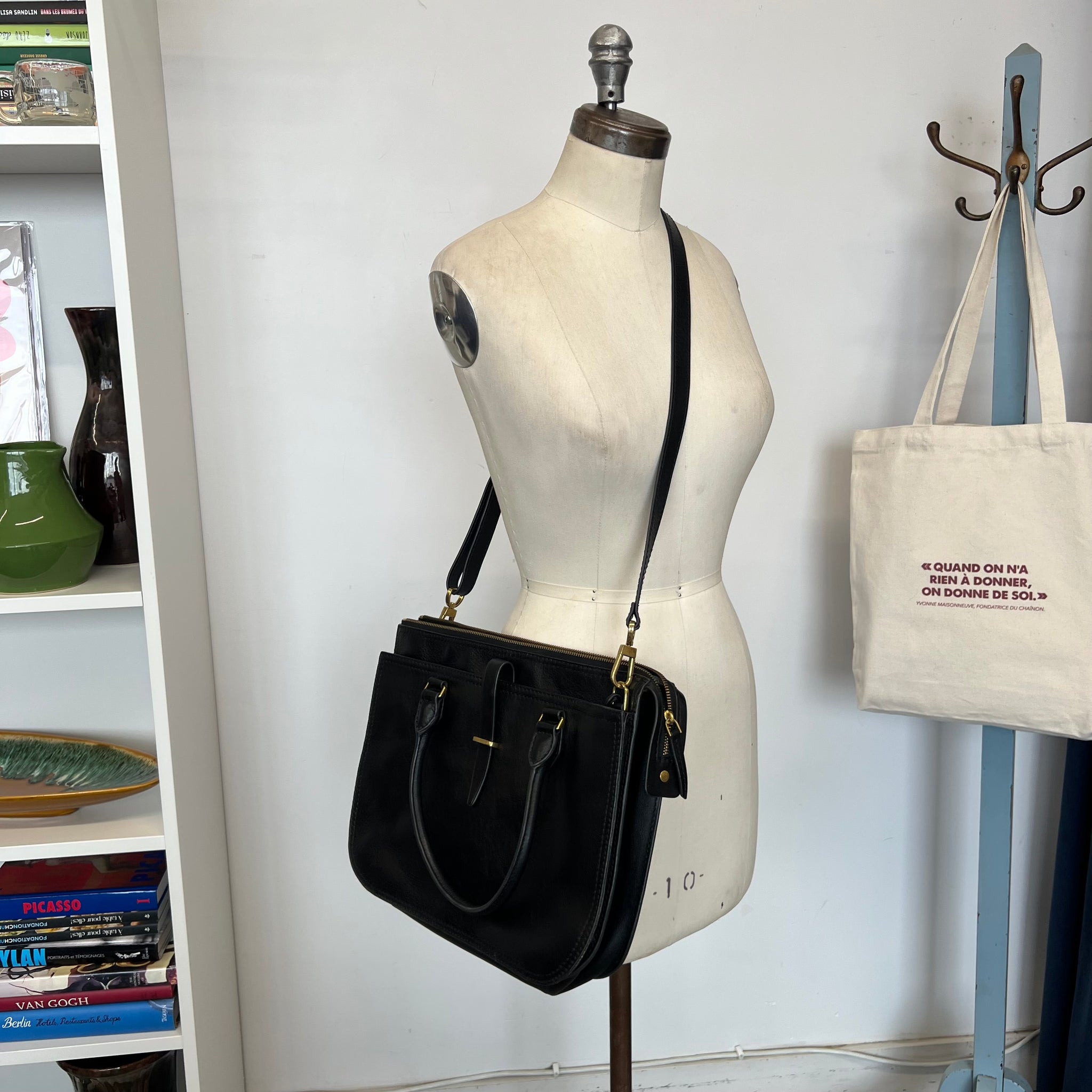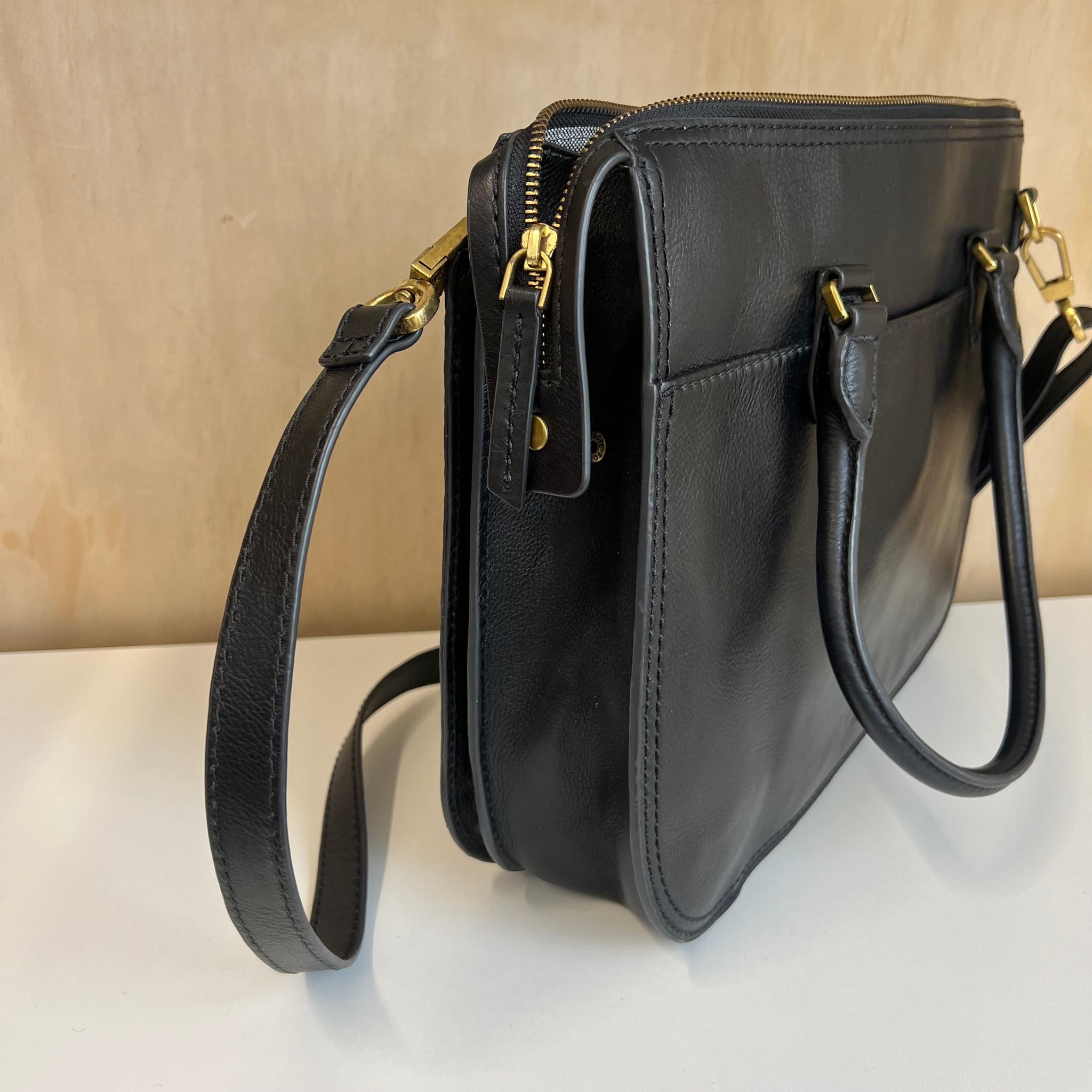 Ce sac en cuir est doté d'une poche zippée, de deux poches plaquées et d'une bandoulière ajustable et amovible. En cuir glacé, le rêve de tout utilisateur multifonctionnel. Il est doté de trois compartiments principaux et de pochettes intérieures. D'une valeur de plus de 150$.