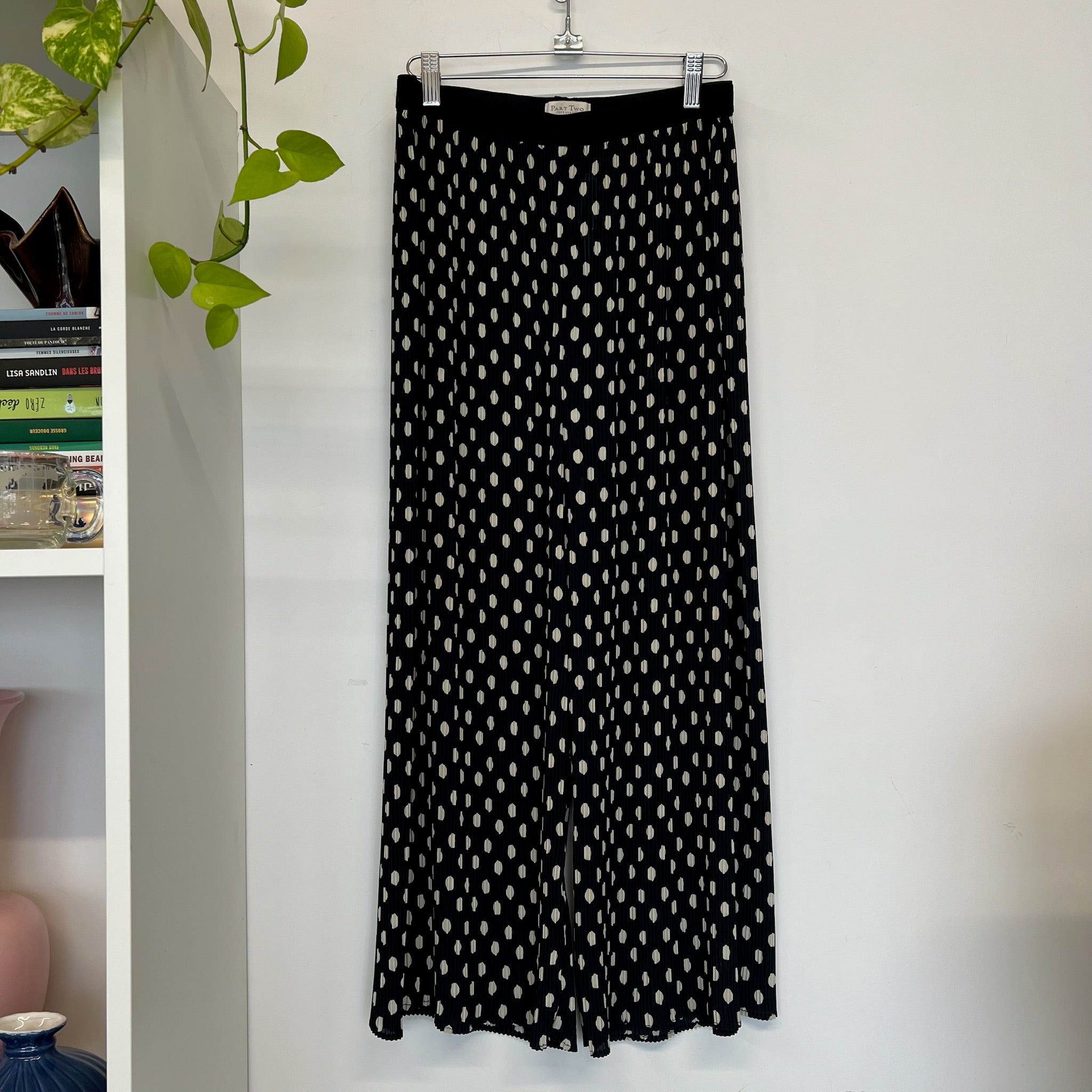 Pantalon fluide de la marque Part Two. Jambe très large, bande élastique à la taille. Tissu plissé avec imprimé à picots, confortable, non doublé.