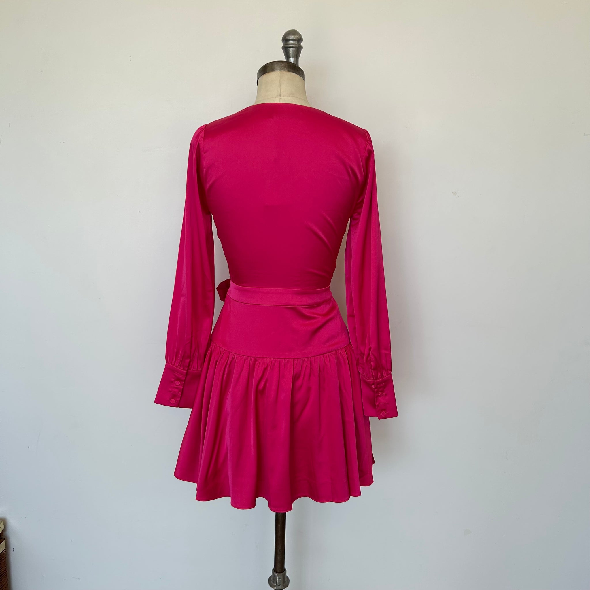 Magnifique robe à reflet brillant de la marque Greylin de couleur rose fuchsia modèle Ester. Cache-coeur avec boutons aux manches et légère doublure. D'une valeur de 175$