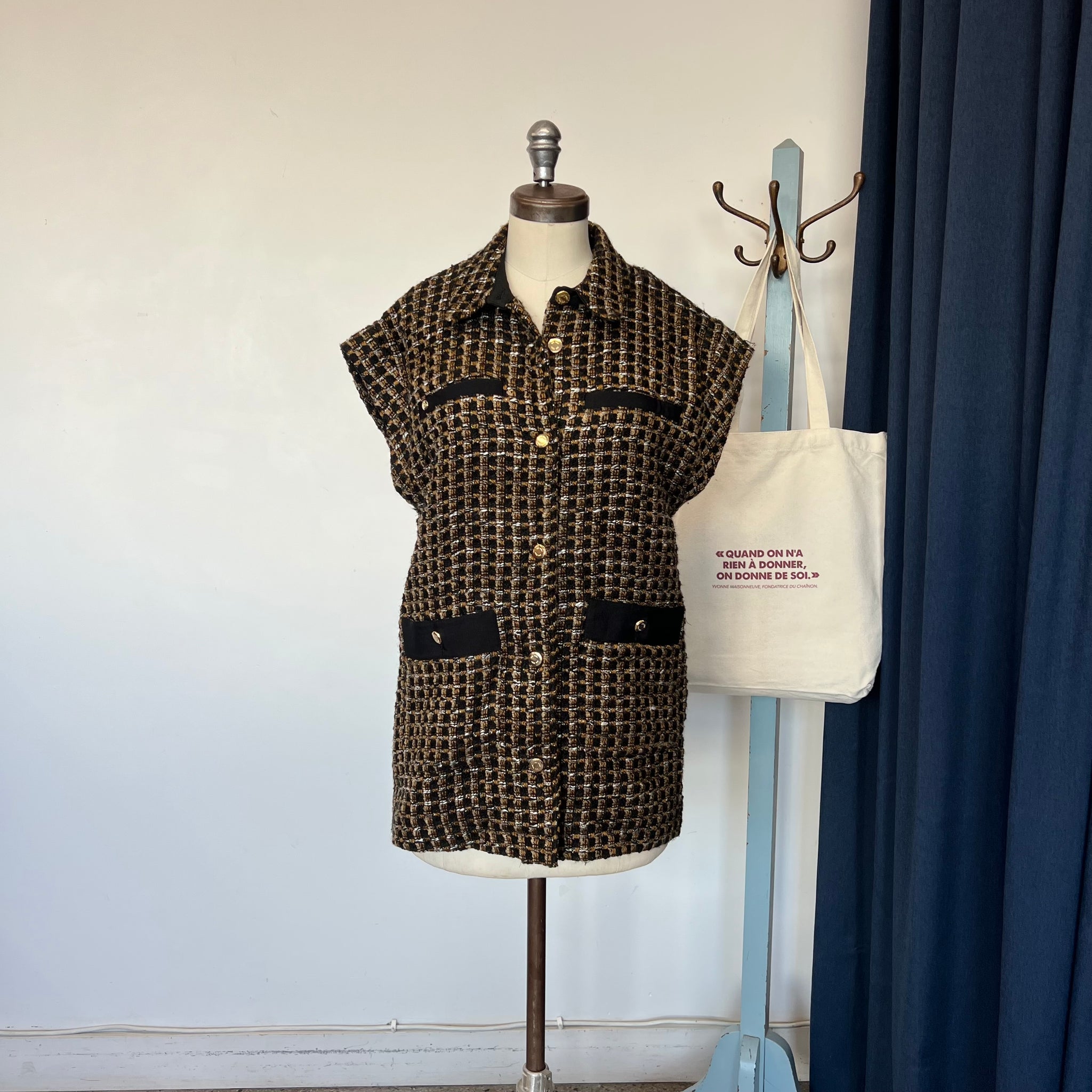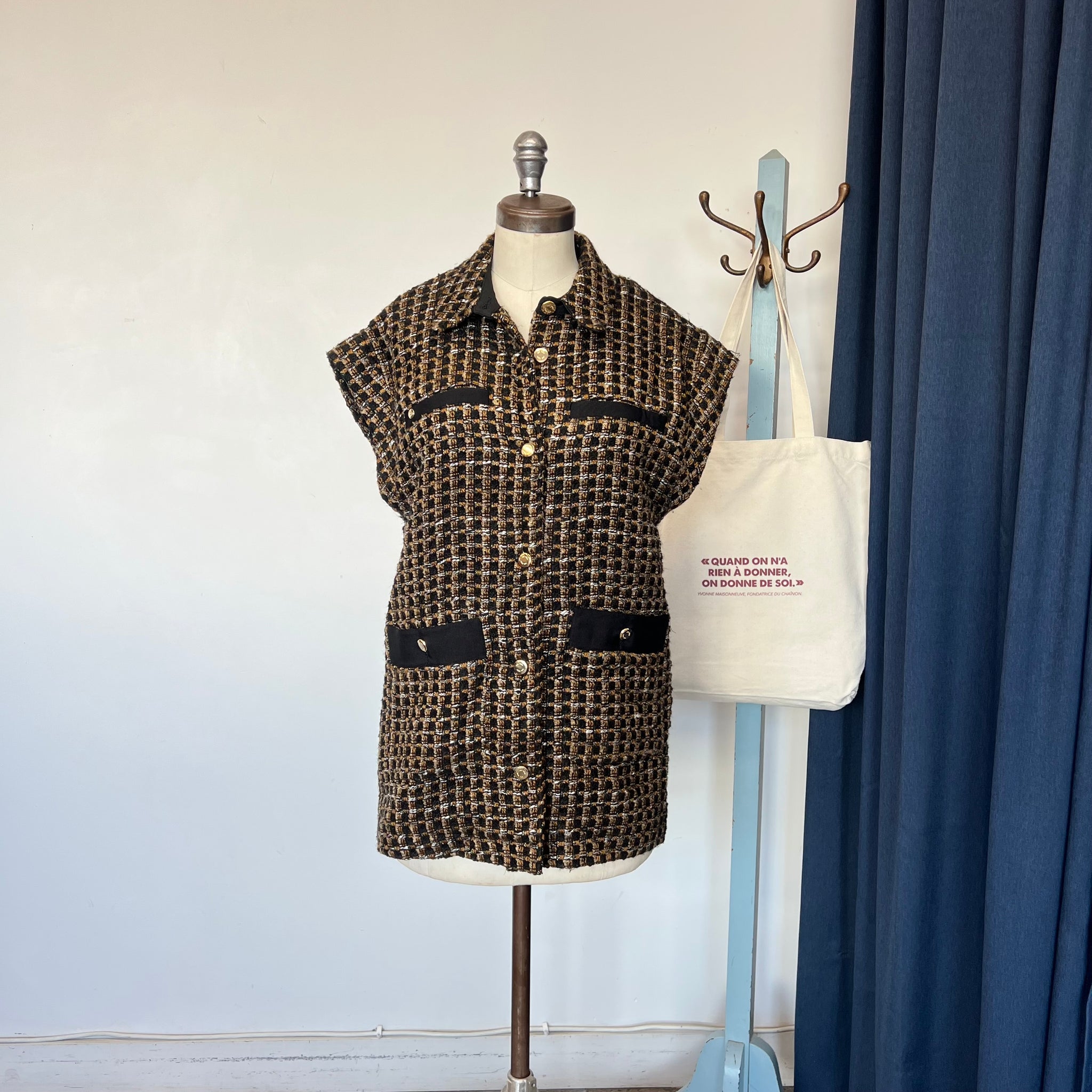 Veste sans manches Mos Mosh modèle Yama Zuhi Waiscoat. Parfait pour être superposé sur des pièces décontractées, ce gilet de MOS MOSH présente une texture bouclée pour plus de relief. Doté d'un col soigné et texturé pour plus de charme, il est confectionné dans un tissu durable qui vous protégera du froid. Avec boutonnière et deux fausses poches sur la poitrine et deux poches latérales. Doublée. D'une valeur de plus de 250$.