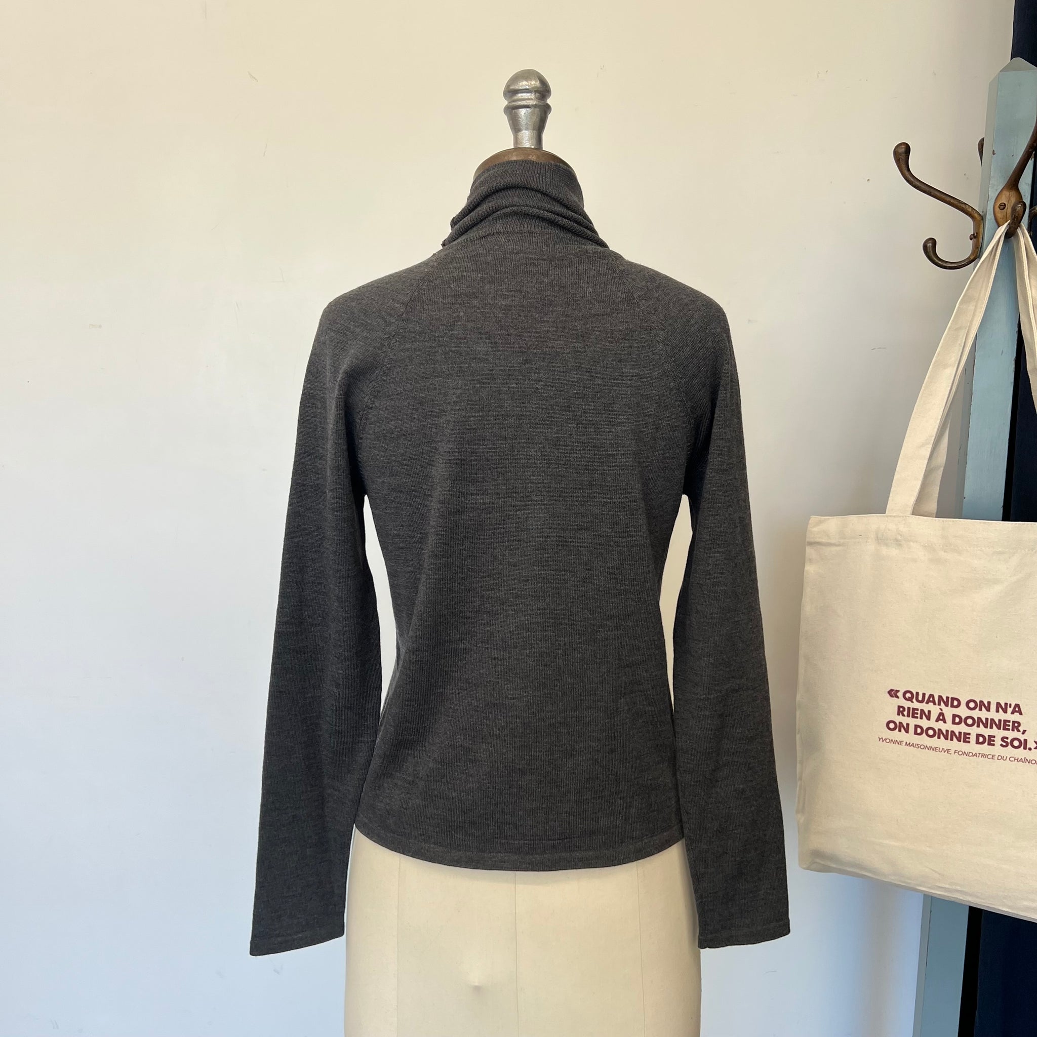 Chandail gris à col roulé de la marque Valentino Miss V. Doux et confortable.