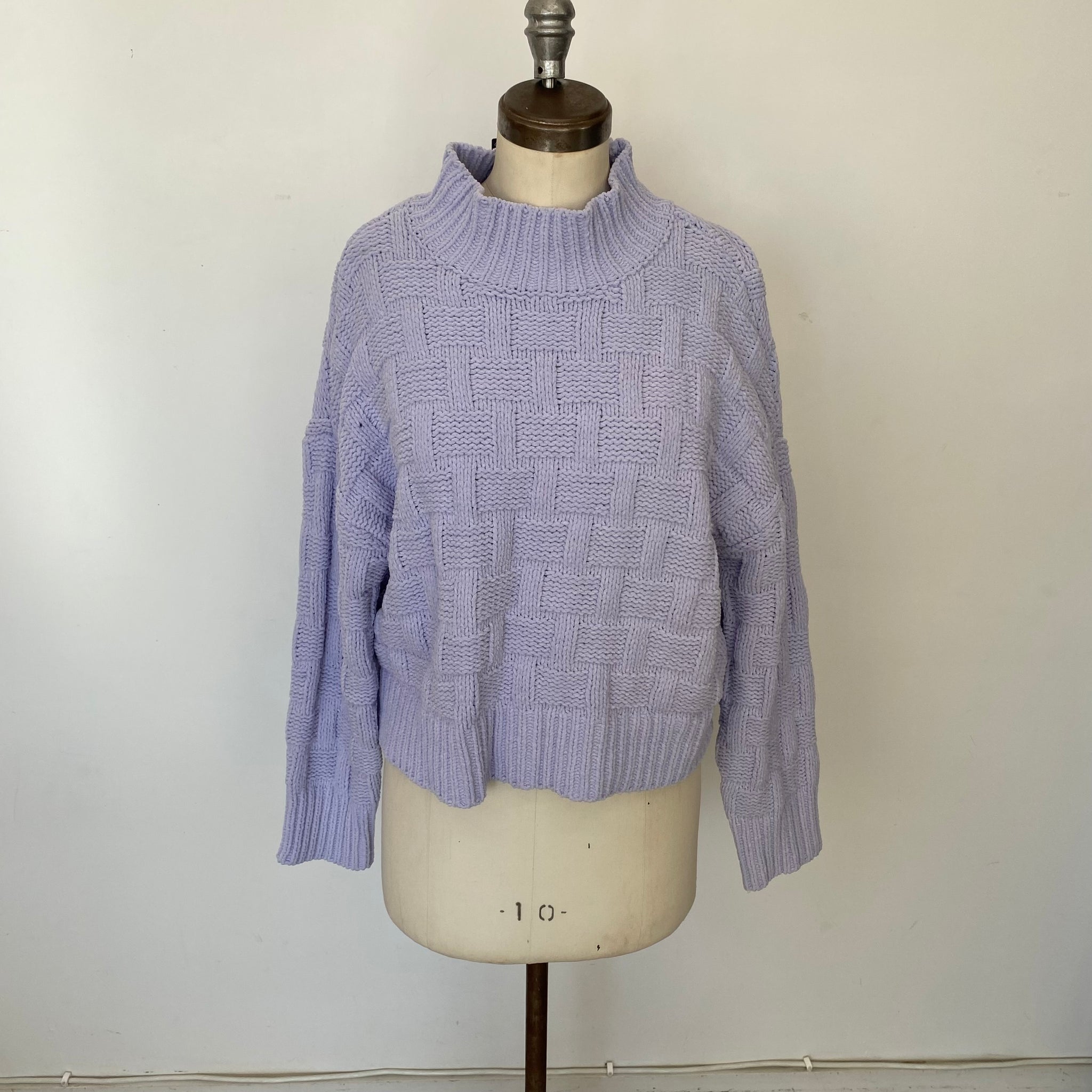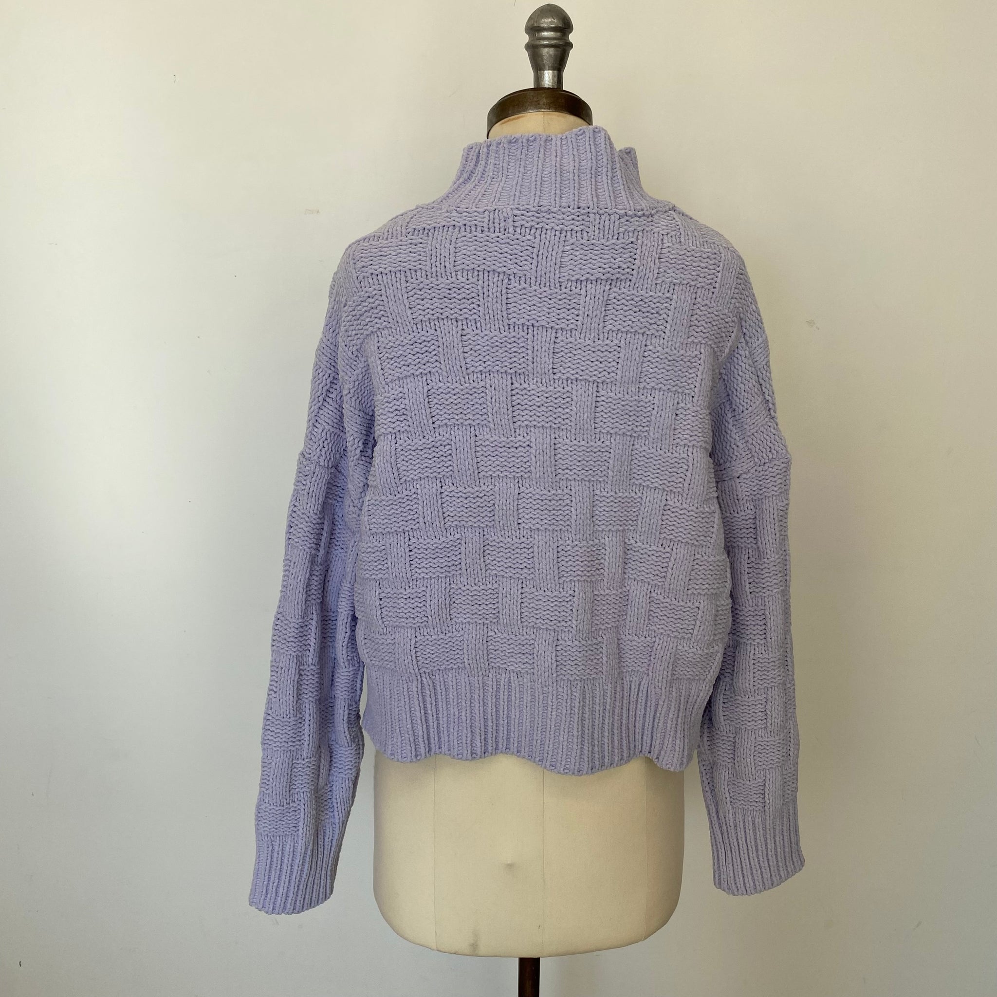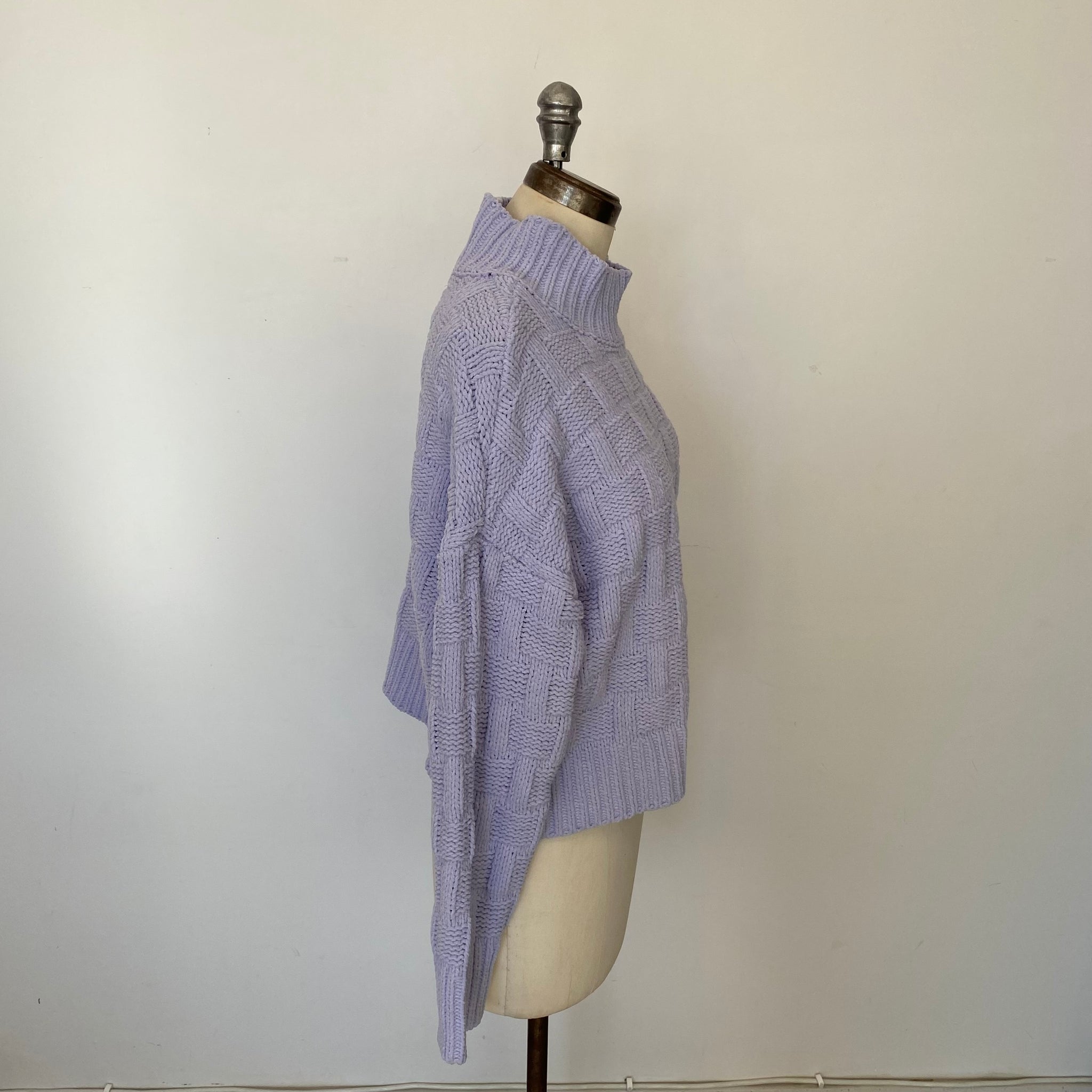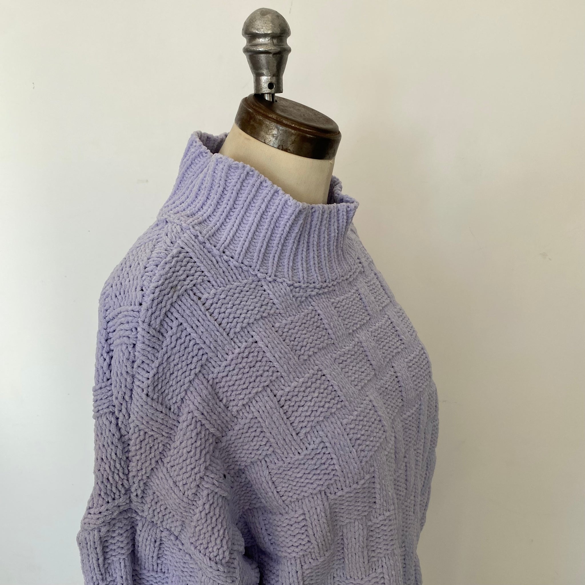 Chandail douillet de style tricot violet de la marque Vero Moda. Grosses mailles tressées, croisée. Effet oversized/puffy.