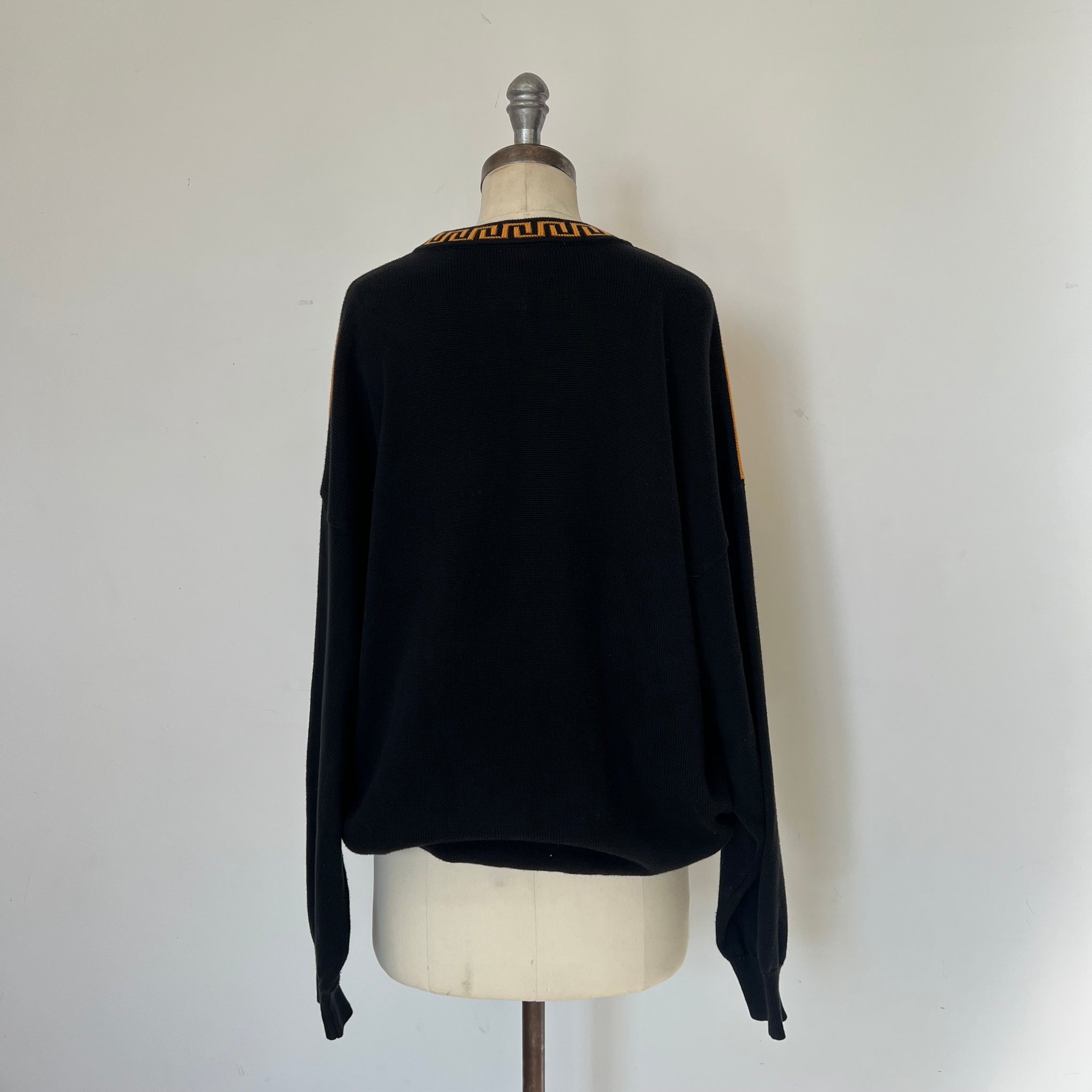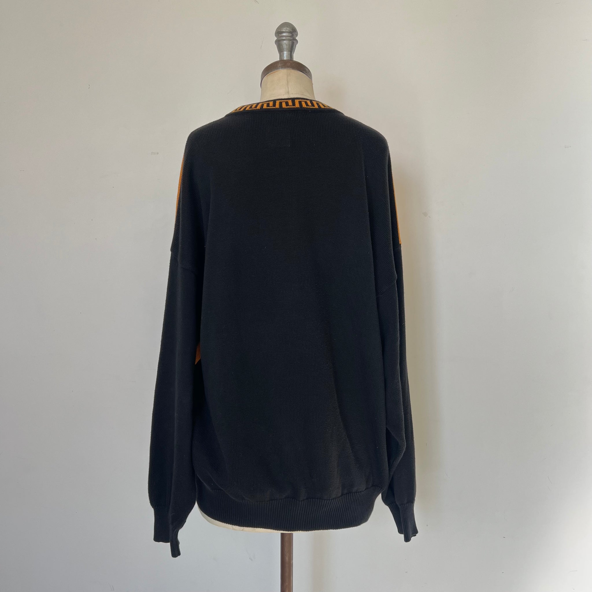 Chandail vintage de style tricot/laine de la marque Gianni Bugli Milano. Avec design abstrait à relief à l'avant, collet aux motifs italiens.