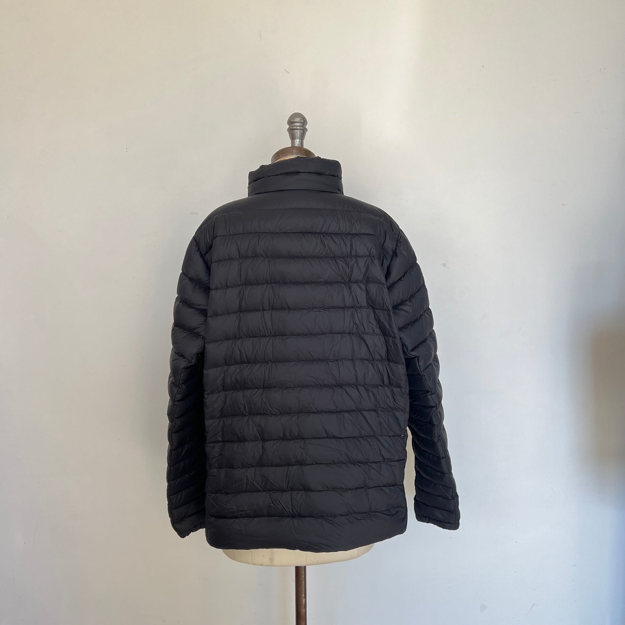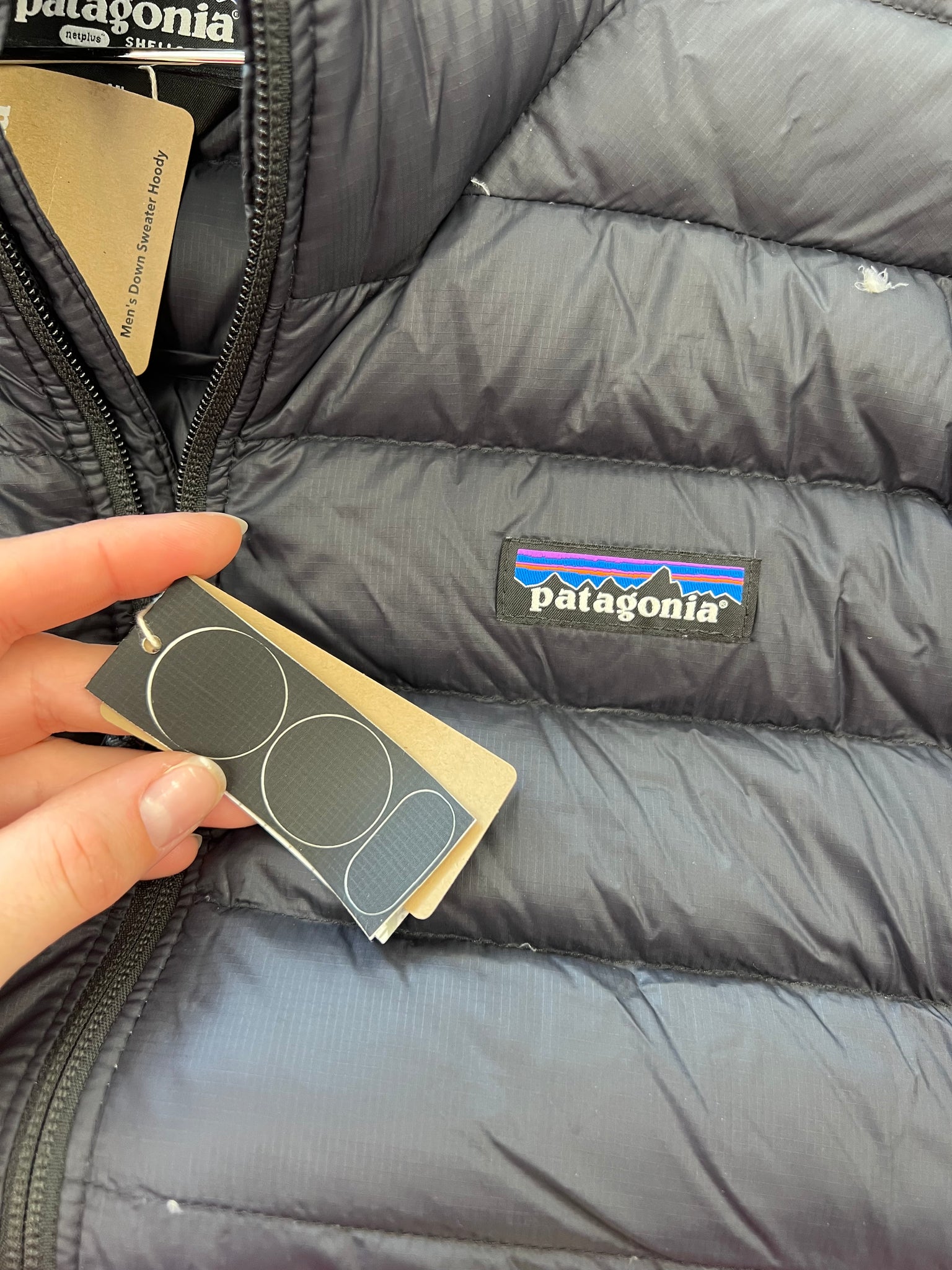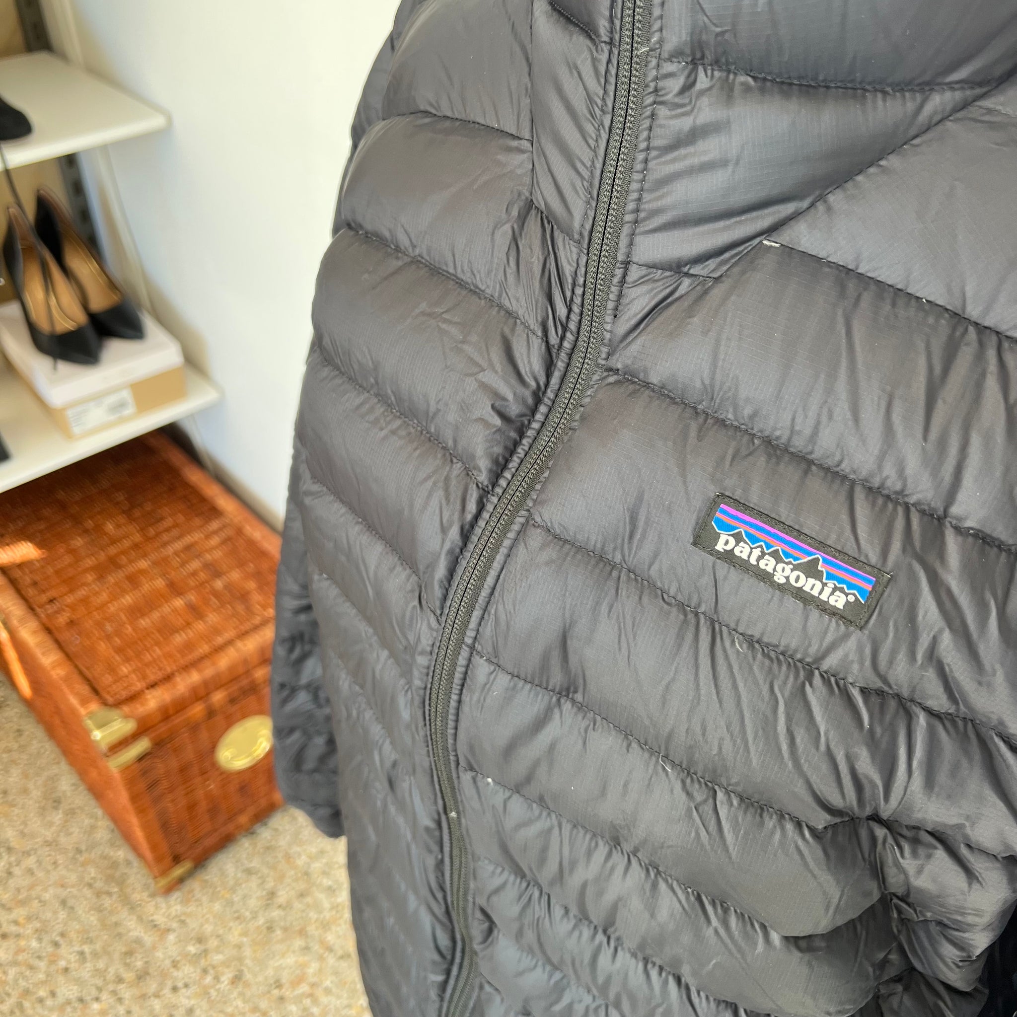 Manteau homme Patagonia en duvet Down Sweate. À la fois légère et coupe-vent, moelleux et aéré pour encore plus de chaleur, matelassage à motifs qui optimise le confort thermique et la liberté de mouvement. D'une valeur de 350$.