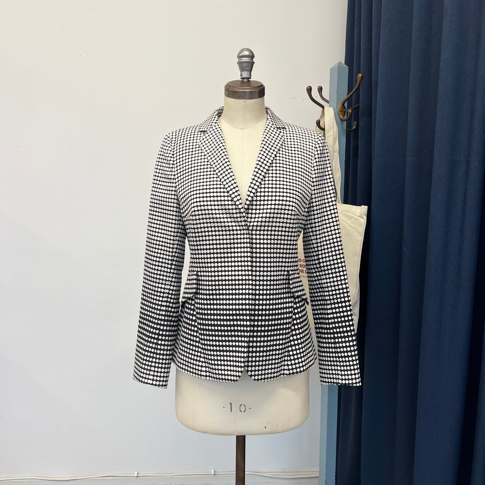 Veston à picots de la marque Akris Punto. Avec épaulettes intégrées, deux fausses poches, deux boutons discrets à pression. Collet à pointes