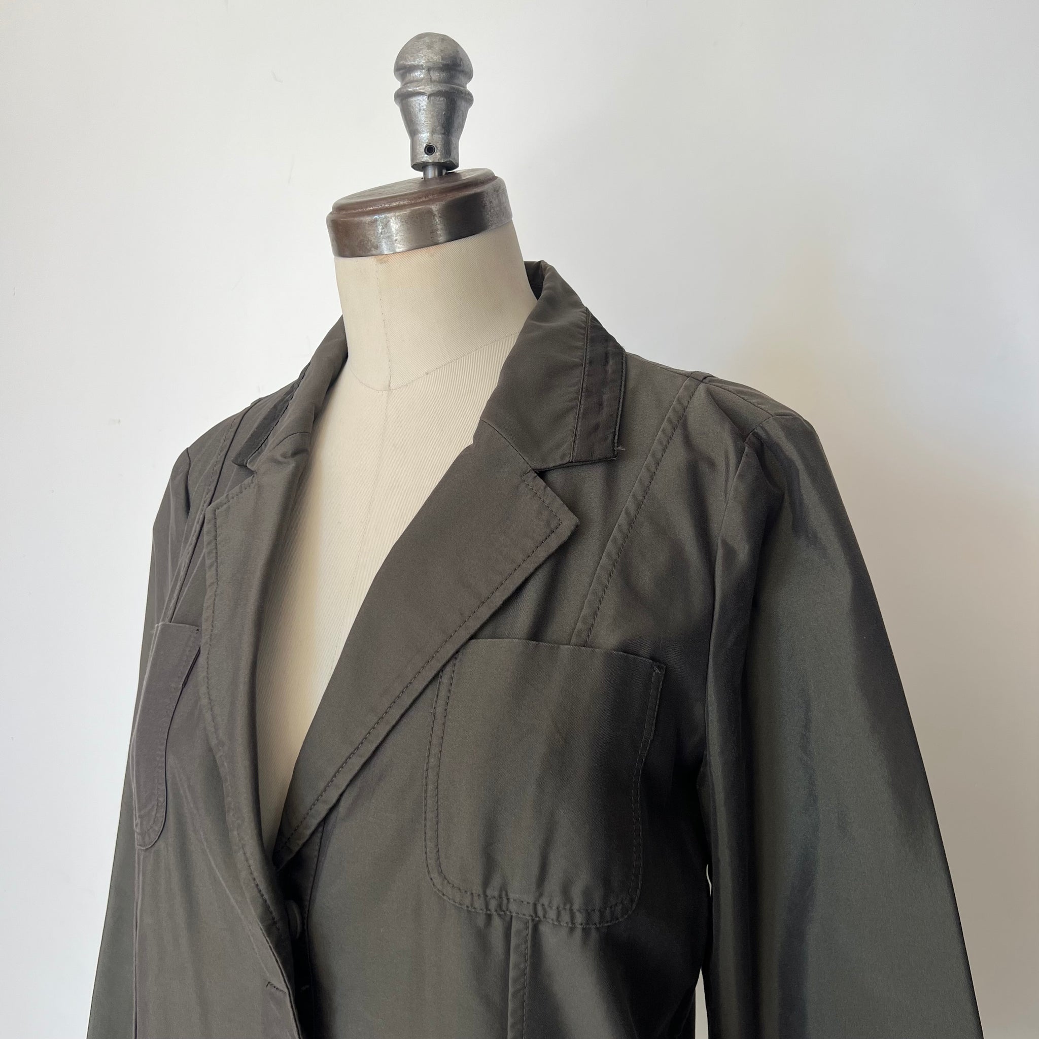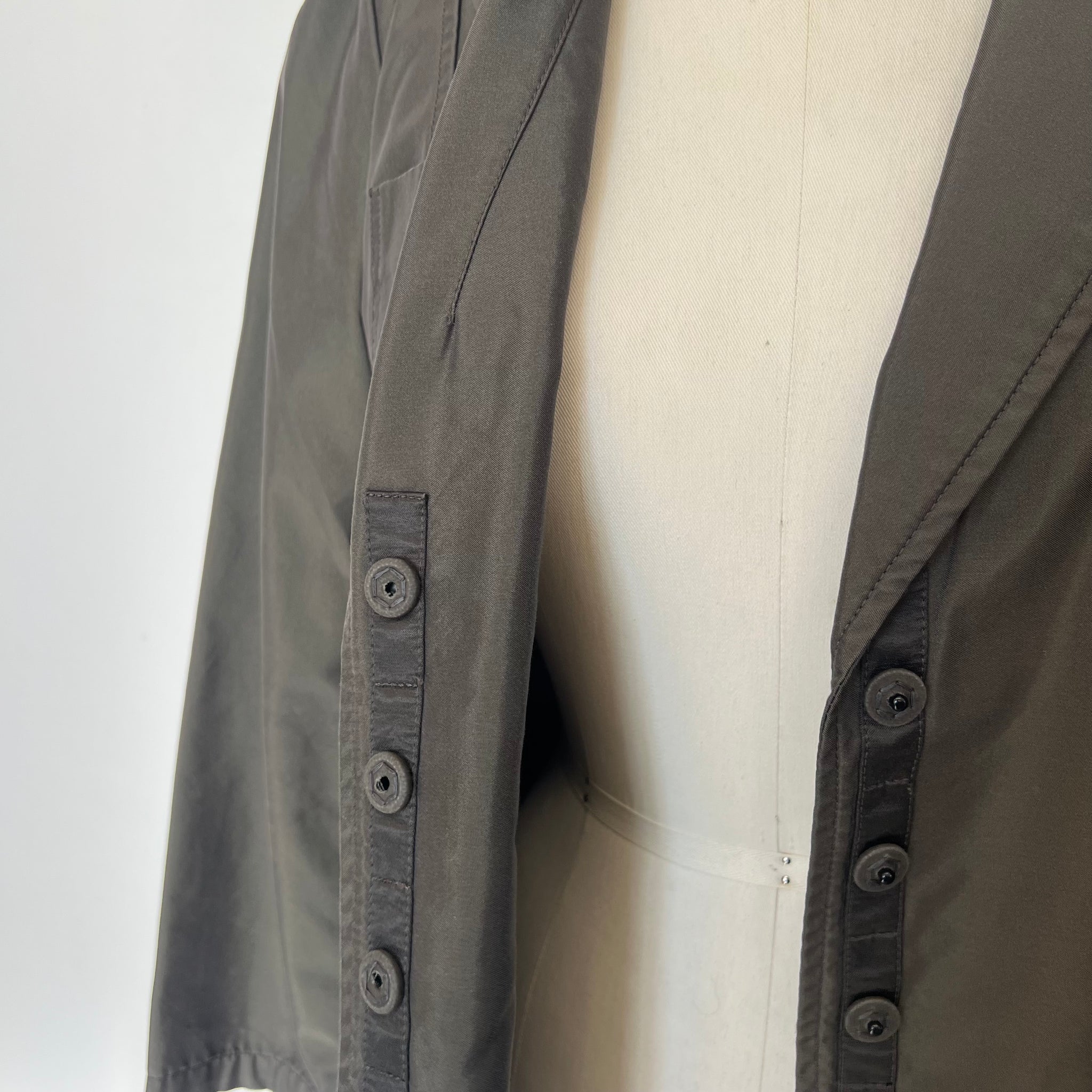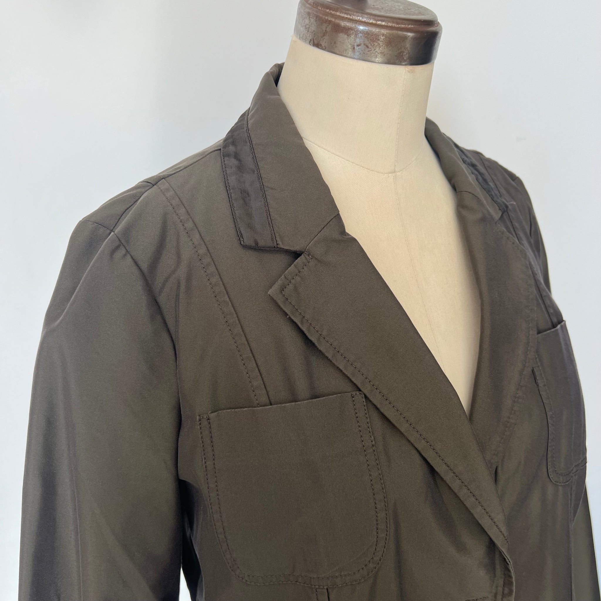 Veston léger à boutons pression de la marque Giorgio Armani. En tissu semblable à du taftan, fini presque scintillant/brillant. Avec 4 poches à l'avant, fente centrale l'arrière.