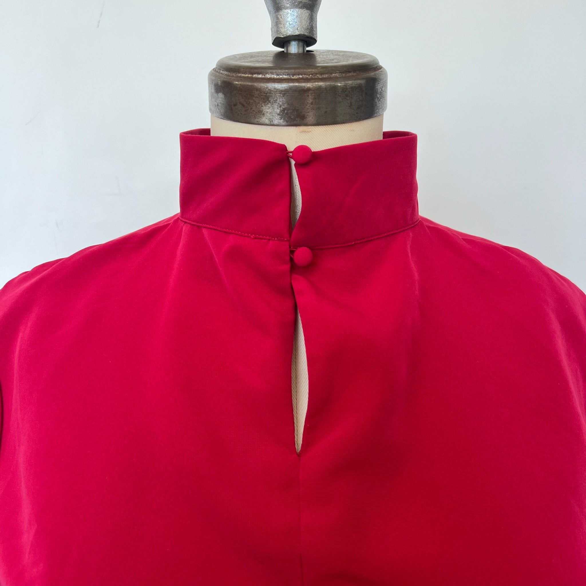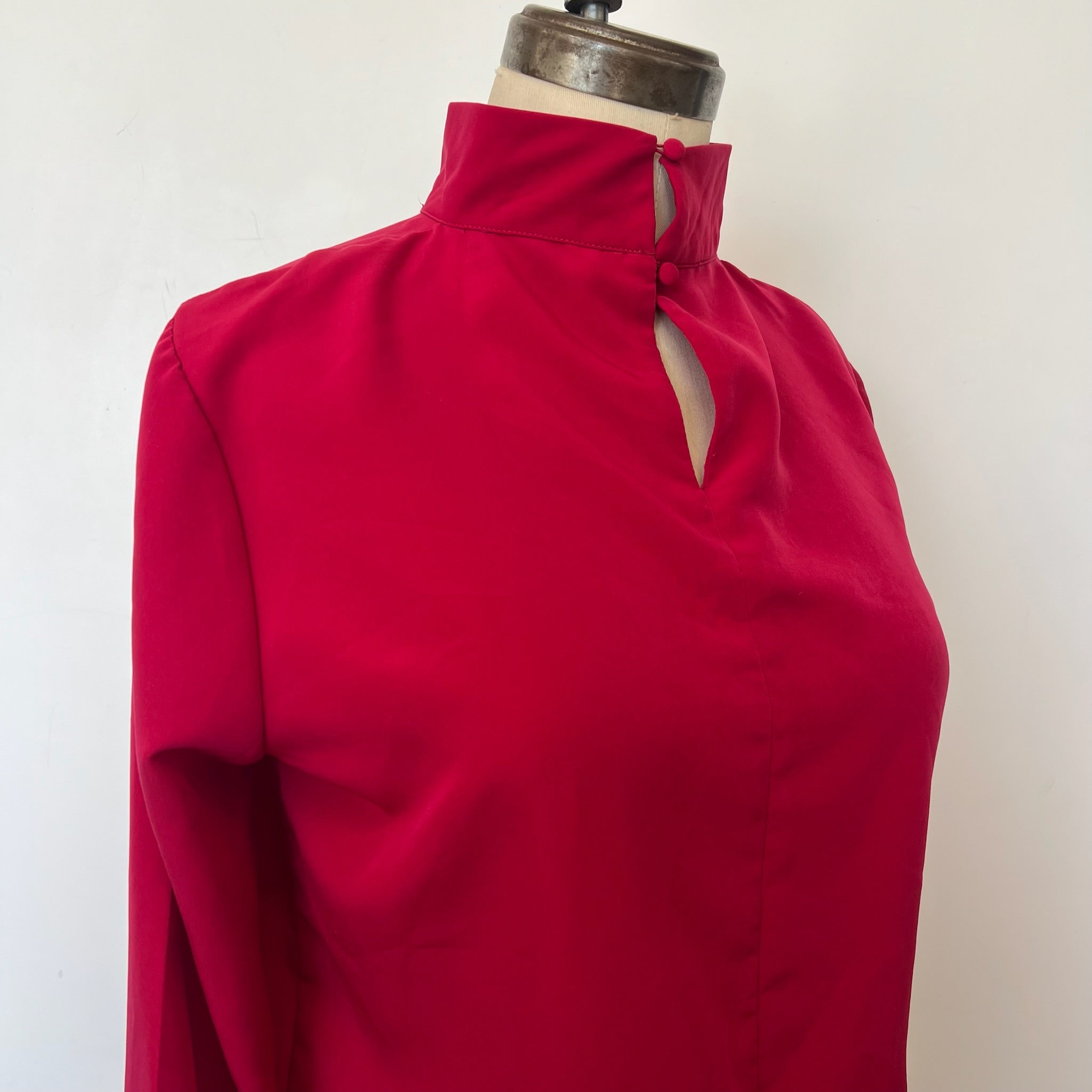 Blouse fluide à couleur vibrante. Col légèrement montant fermé par de délicats boutons à l’arrière. Manches longues avec poignets boutonnés pour une touche raffinée.