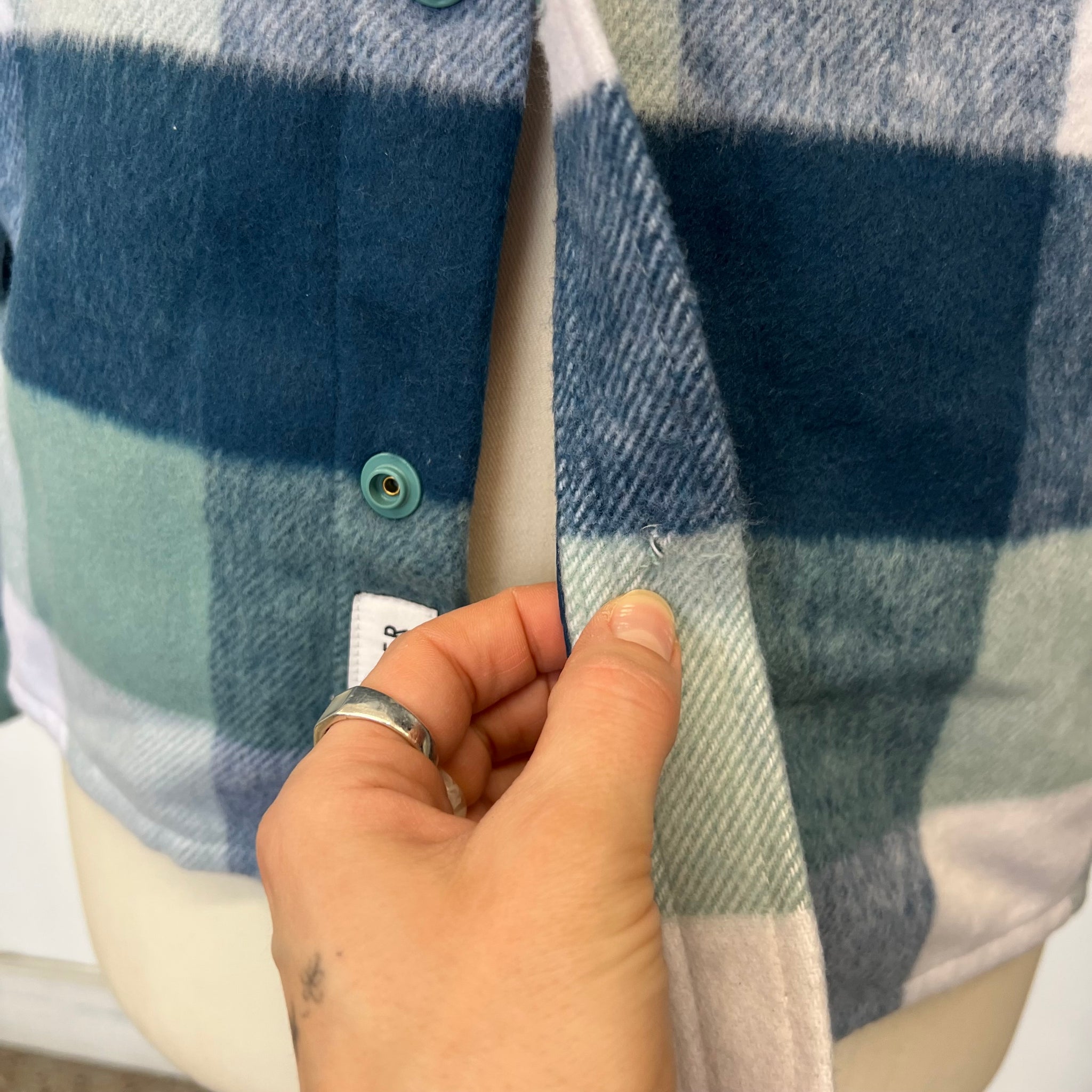 • Étiquette Vallier cousue à l’ourlet