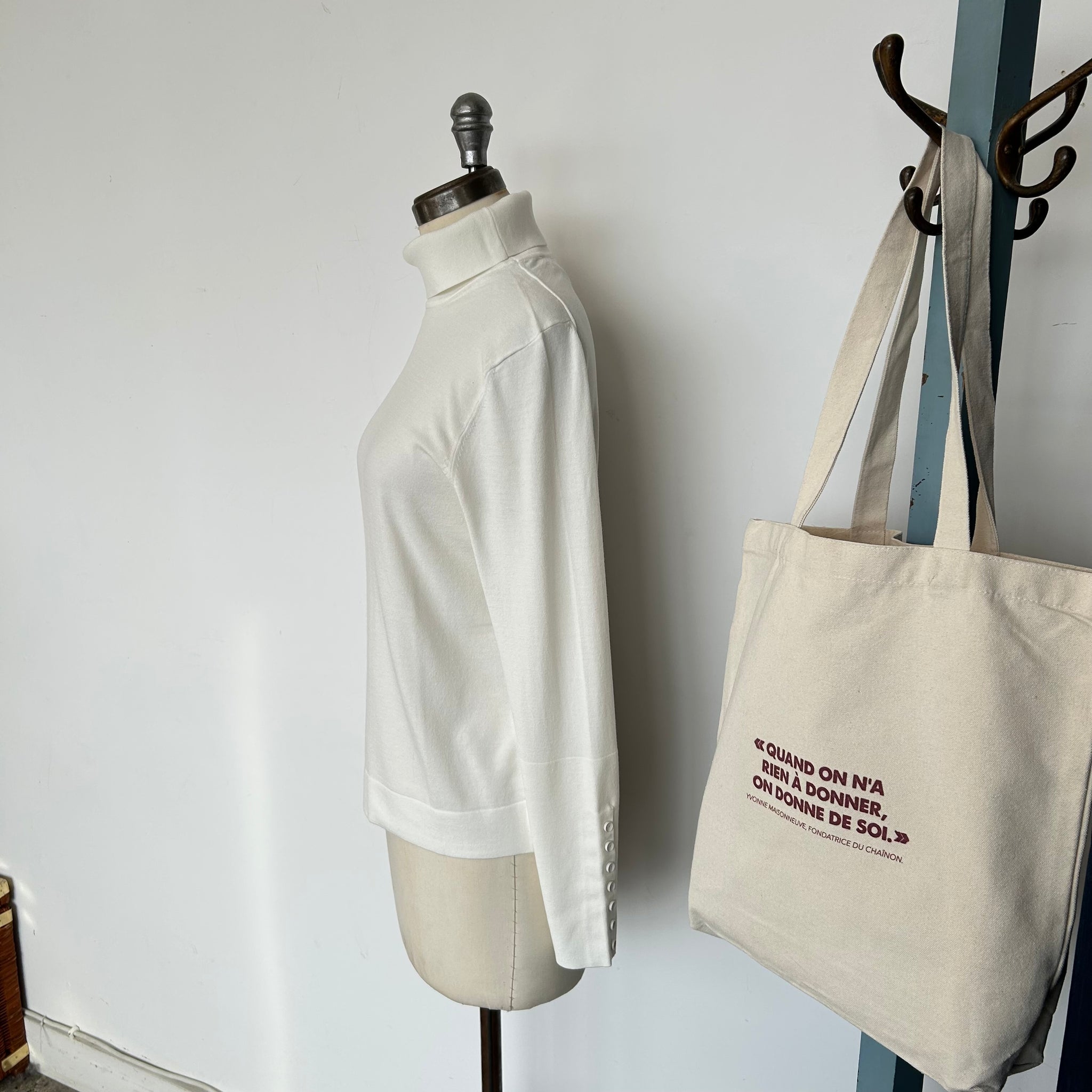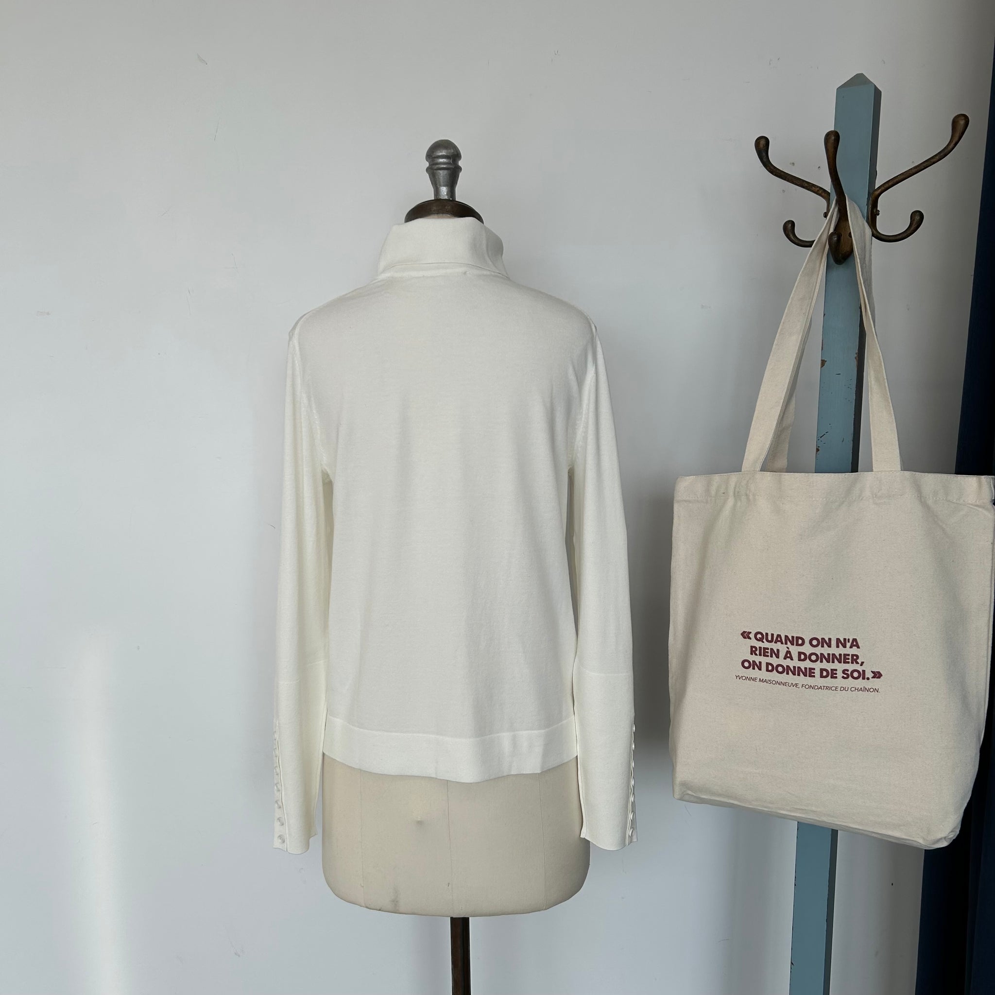 Chandail à col roulé de la marque Yaya Women. Avec faux boutons (décoratifs) aux manches. Tissu doux, légèrement transparent D'une valeur de 115$.