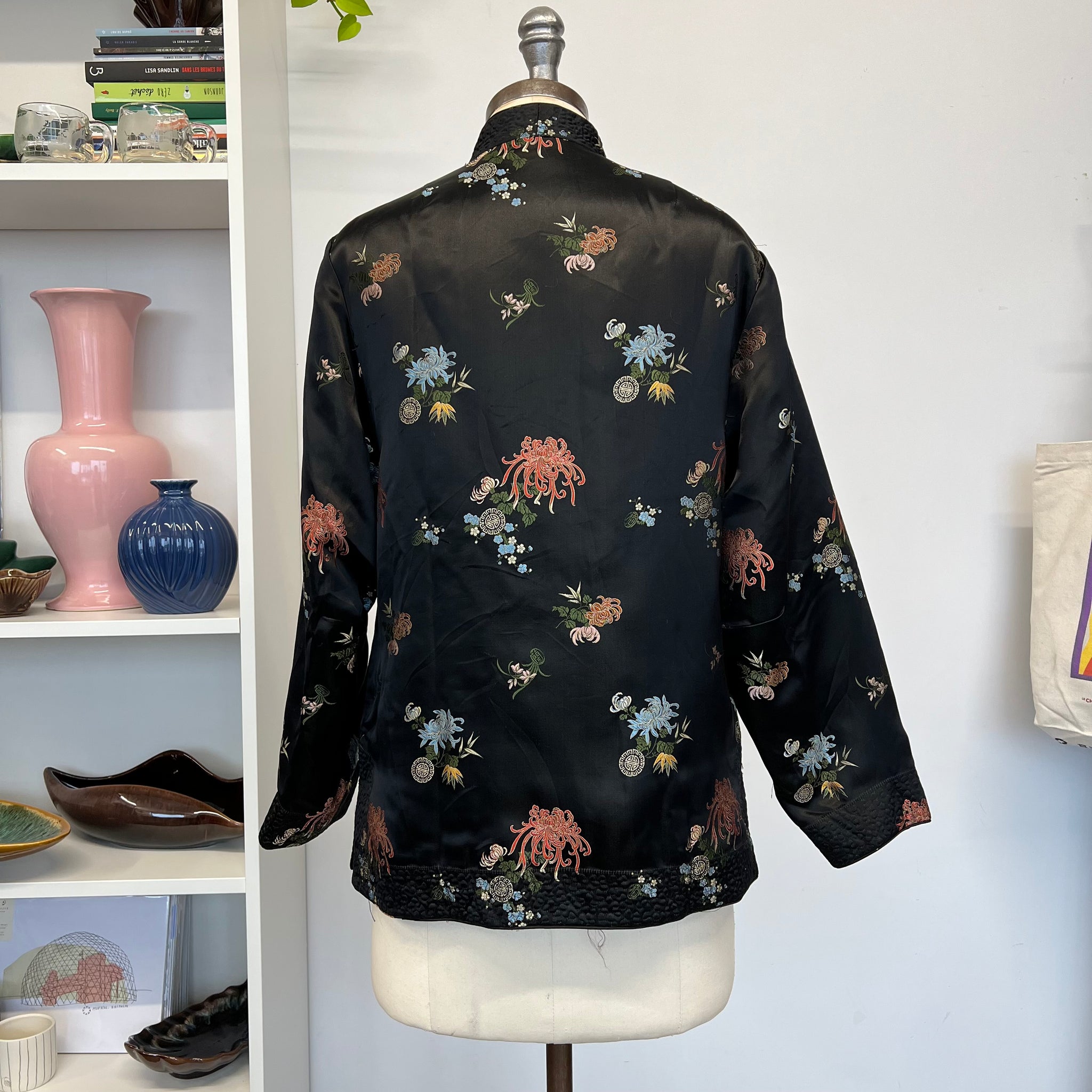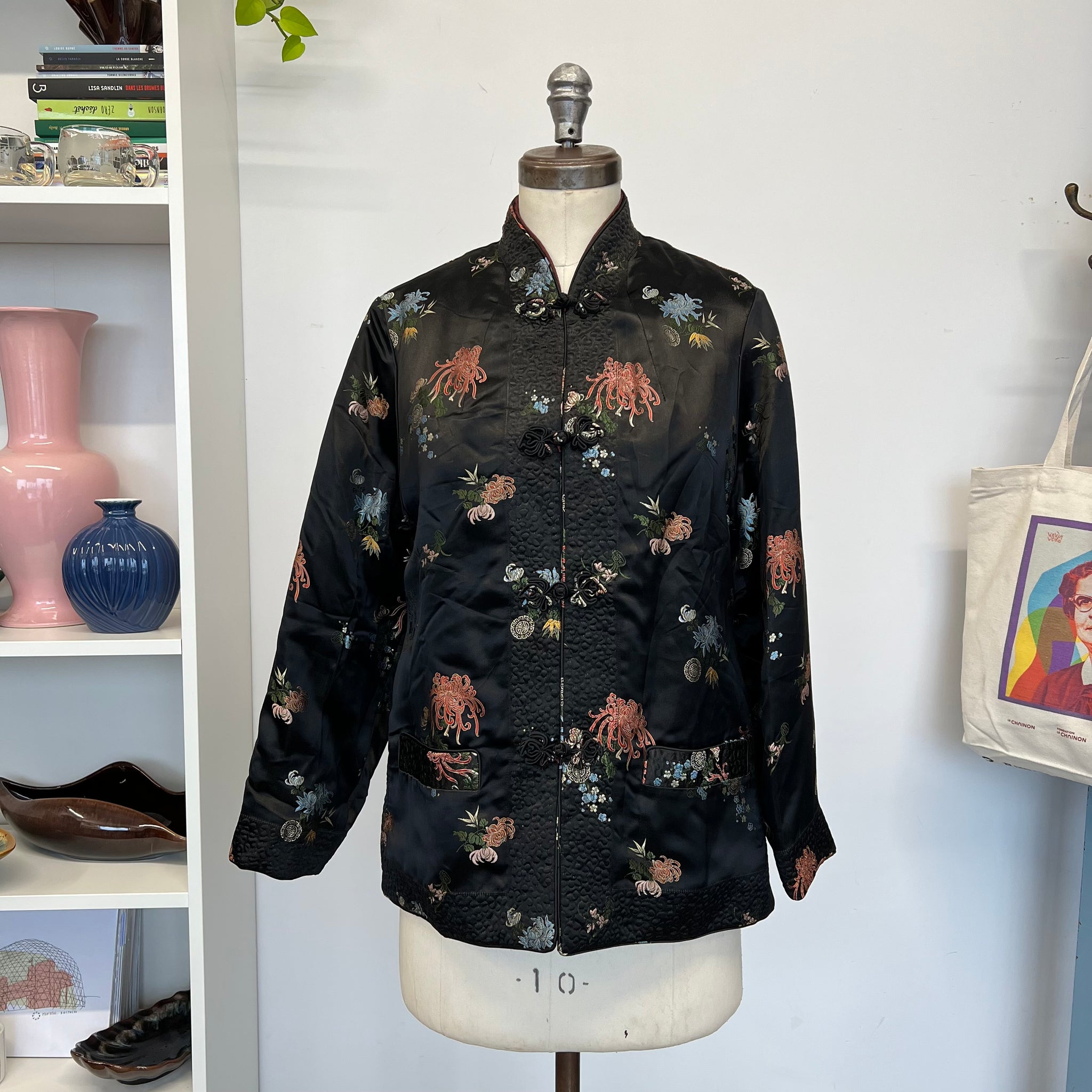 Veste à motifs à inspiration chinoise, de style Kimono en soie. Tissu très doux, doublé mais léger, réversible.