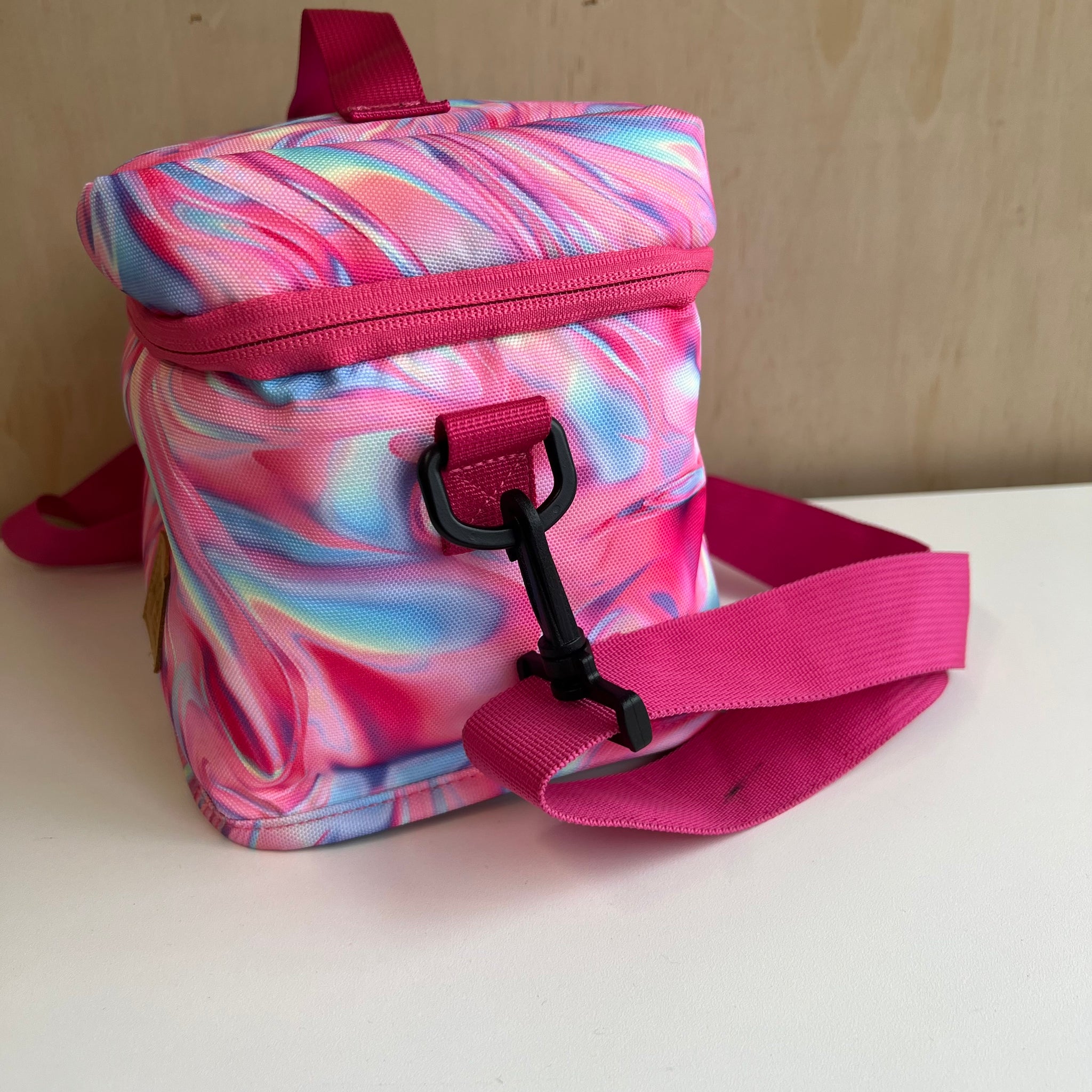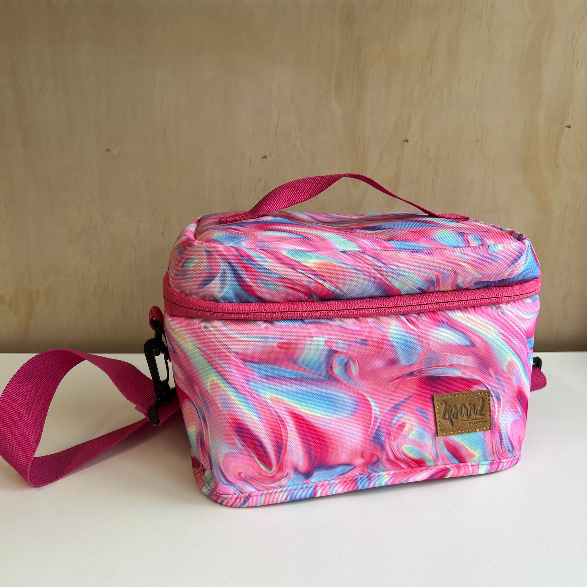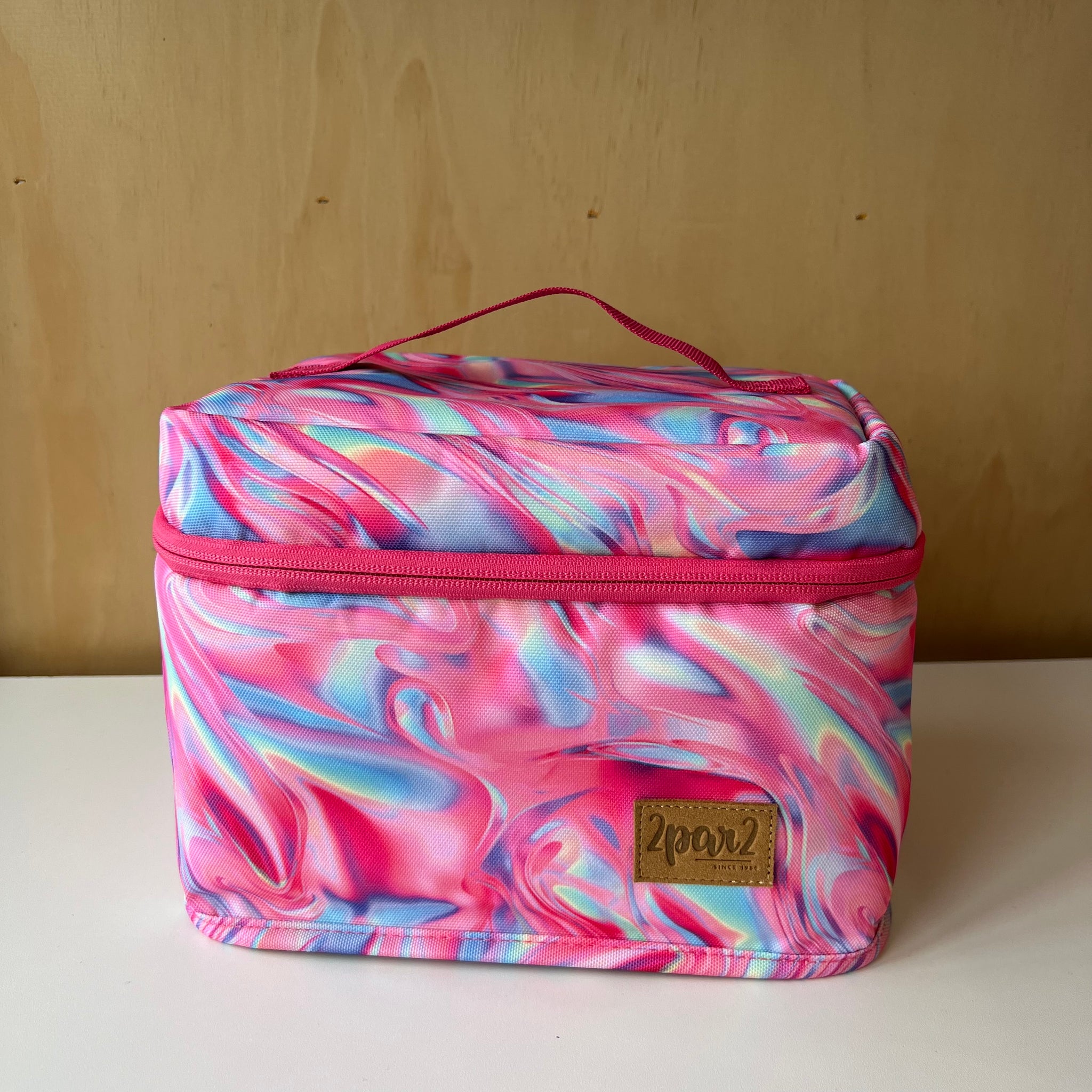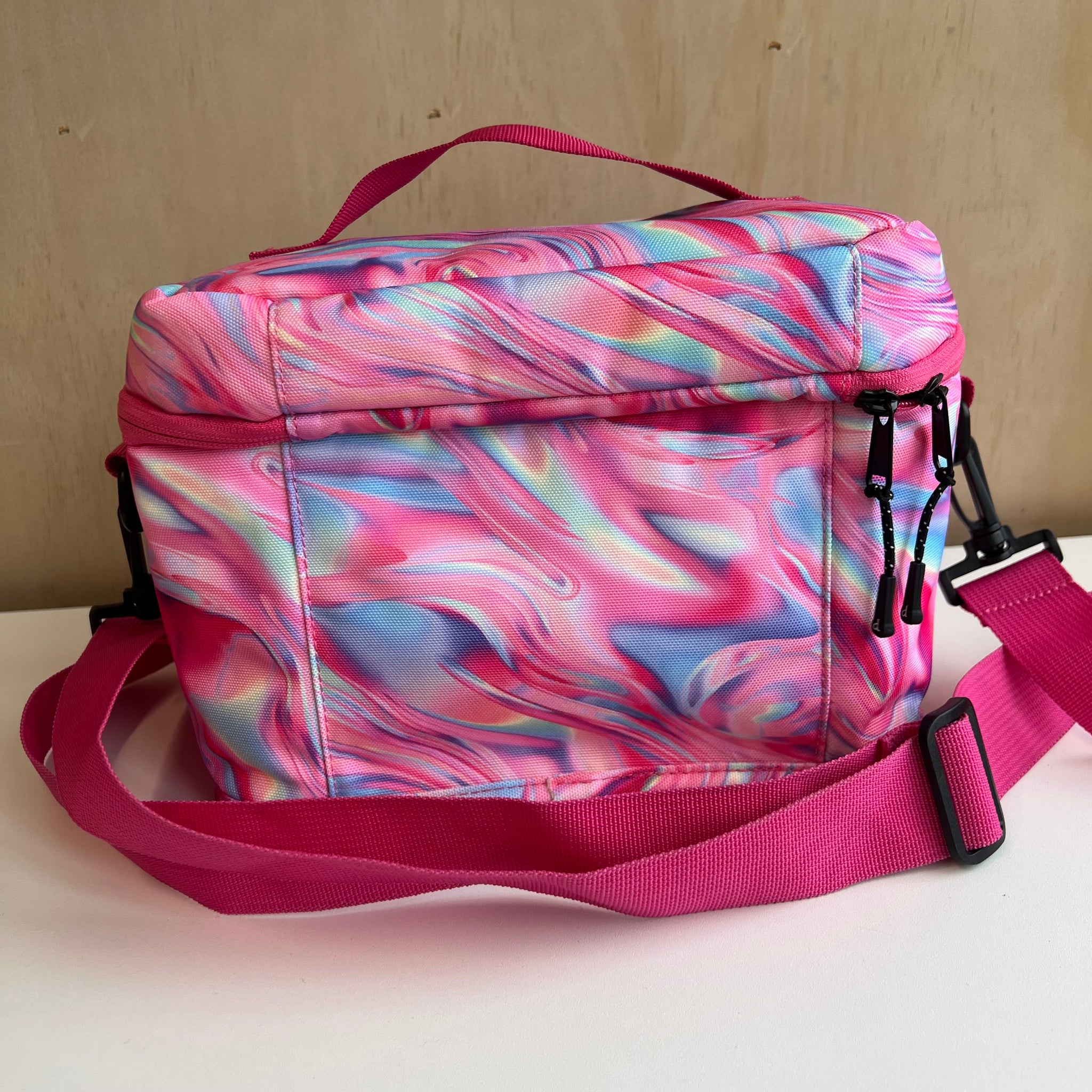 Boite à lunch de grand format à imprimé de fleurs mauves, parfait pour tous les types de contenants. Poche intérieure zippée en mesh pour les ustensiles, serviettes ou autres petits articles. Le compartiment principal isotherme maintient les articles chauds ou froids. Avec étiquette d'indentification intérieure pour nom et téléphone. Laver à la machine à l'eau froide, suspendre pour sécher (ou nettoyer à sec).