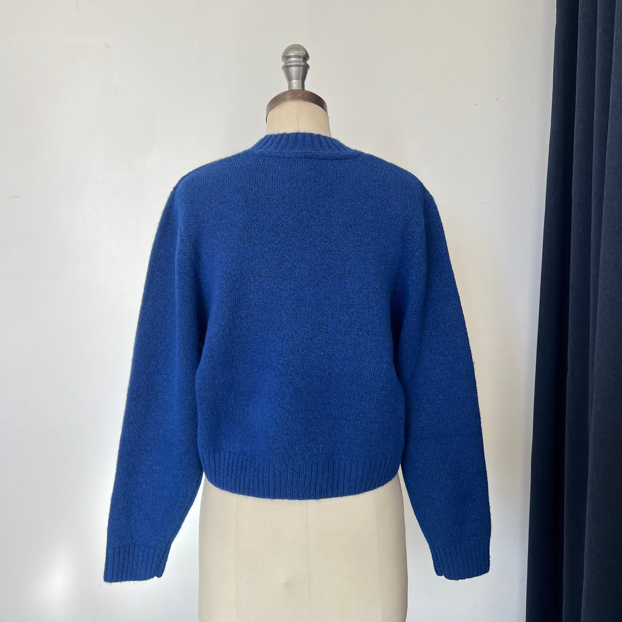 Chandail de style tricot/laine à manches longues de la marque Twik par Simons. Très doux, mailles bleues et noires.