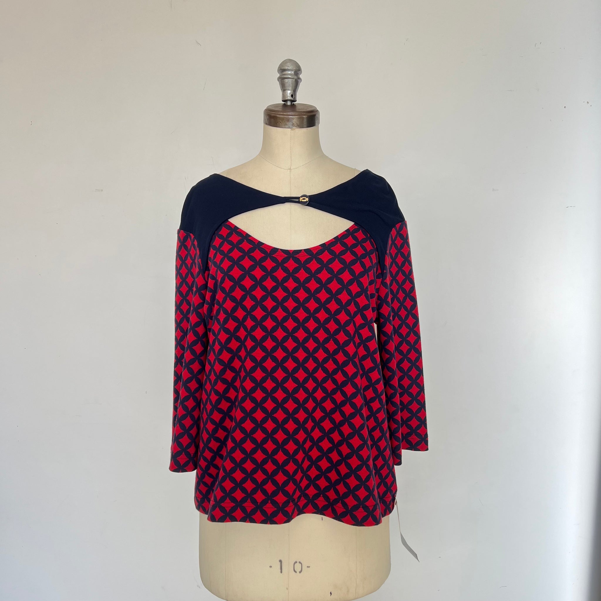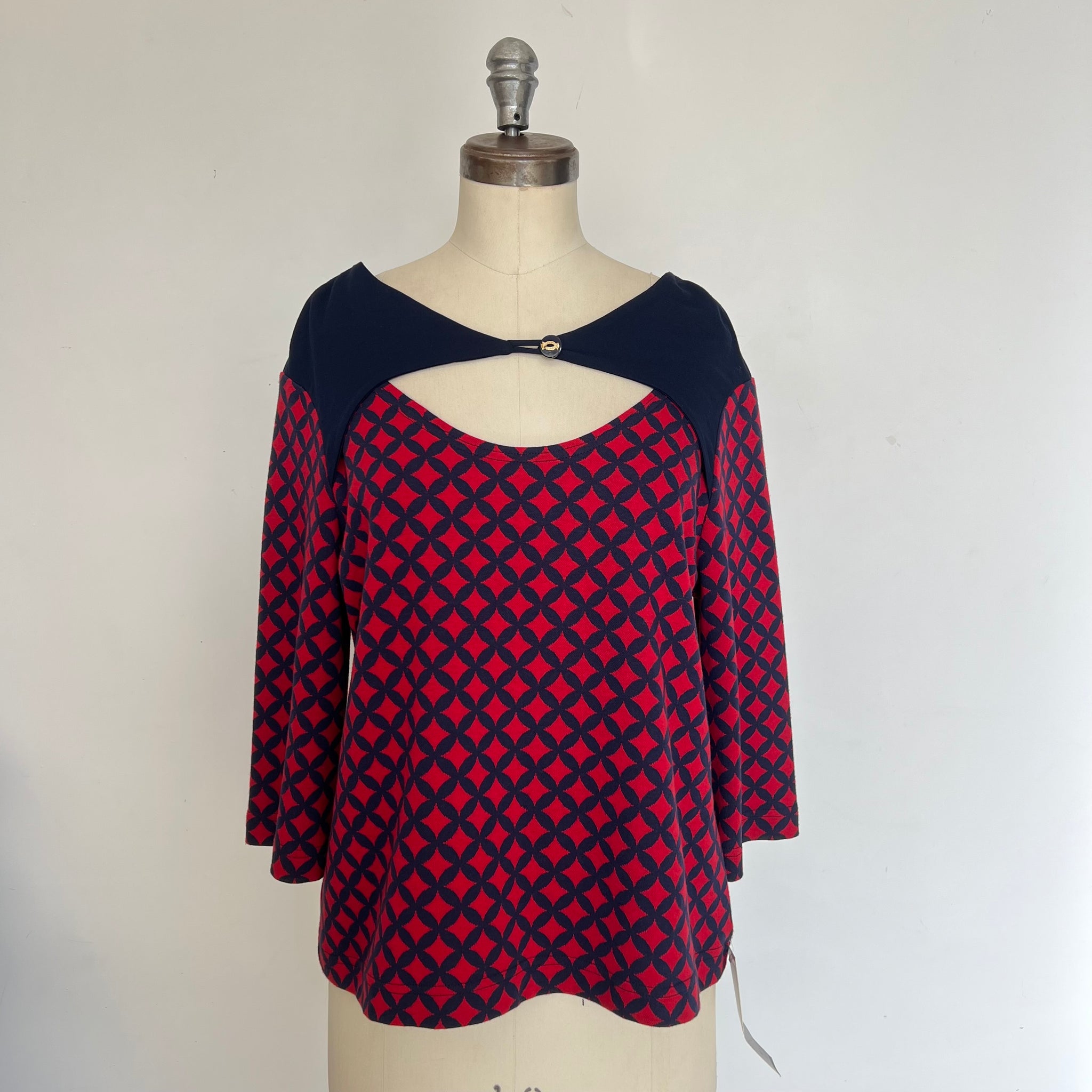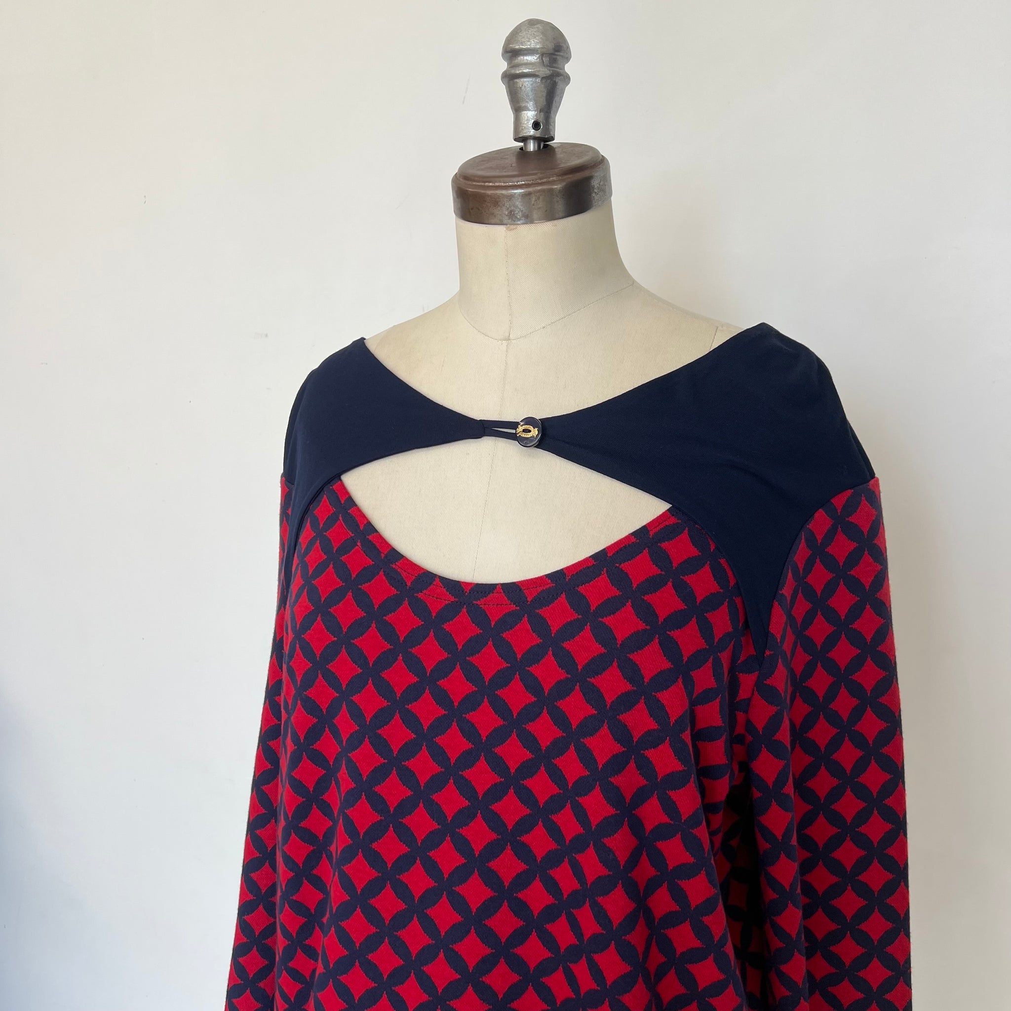 Chandail à manches longues de la marque québécoise Voyou. Modèle Célia. Tissu à motifs très confortable. Ouverture avec bouton qui peut être portée à l'avant ou à l'arrière. D'une valeur de 120$.