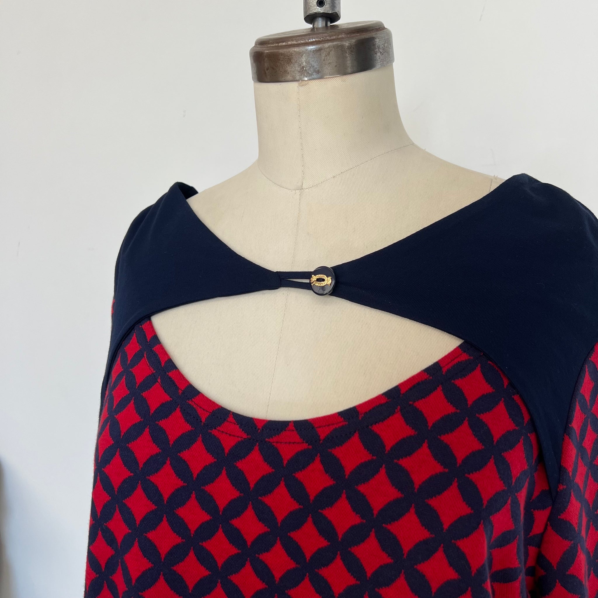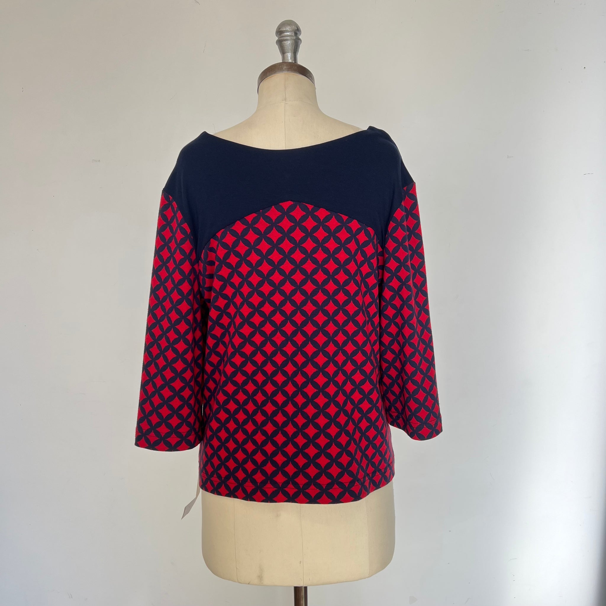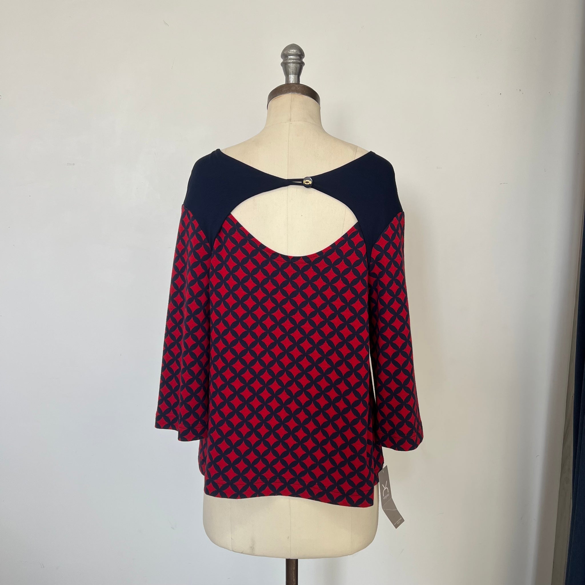 Chandail à manches longues de la marque québécoise Voyou. Modèle Célia. Tissu à motifs très confortable. Ouverture avec bouton qui peut être portée à l'avant ou à l'arrière. D'une valeur de 120$.