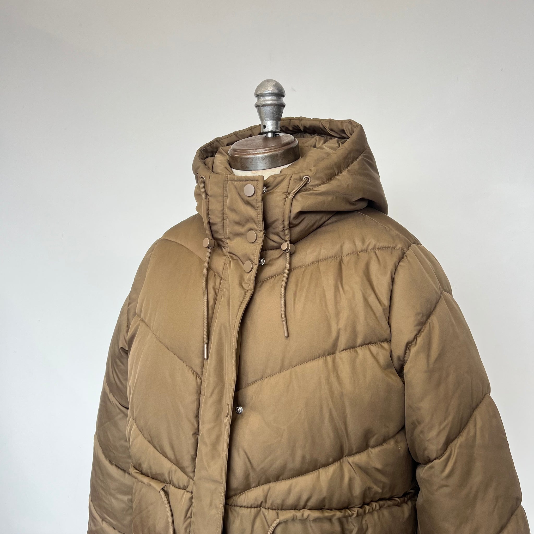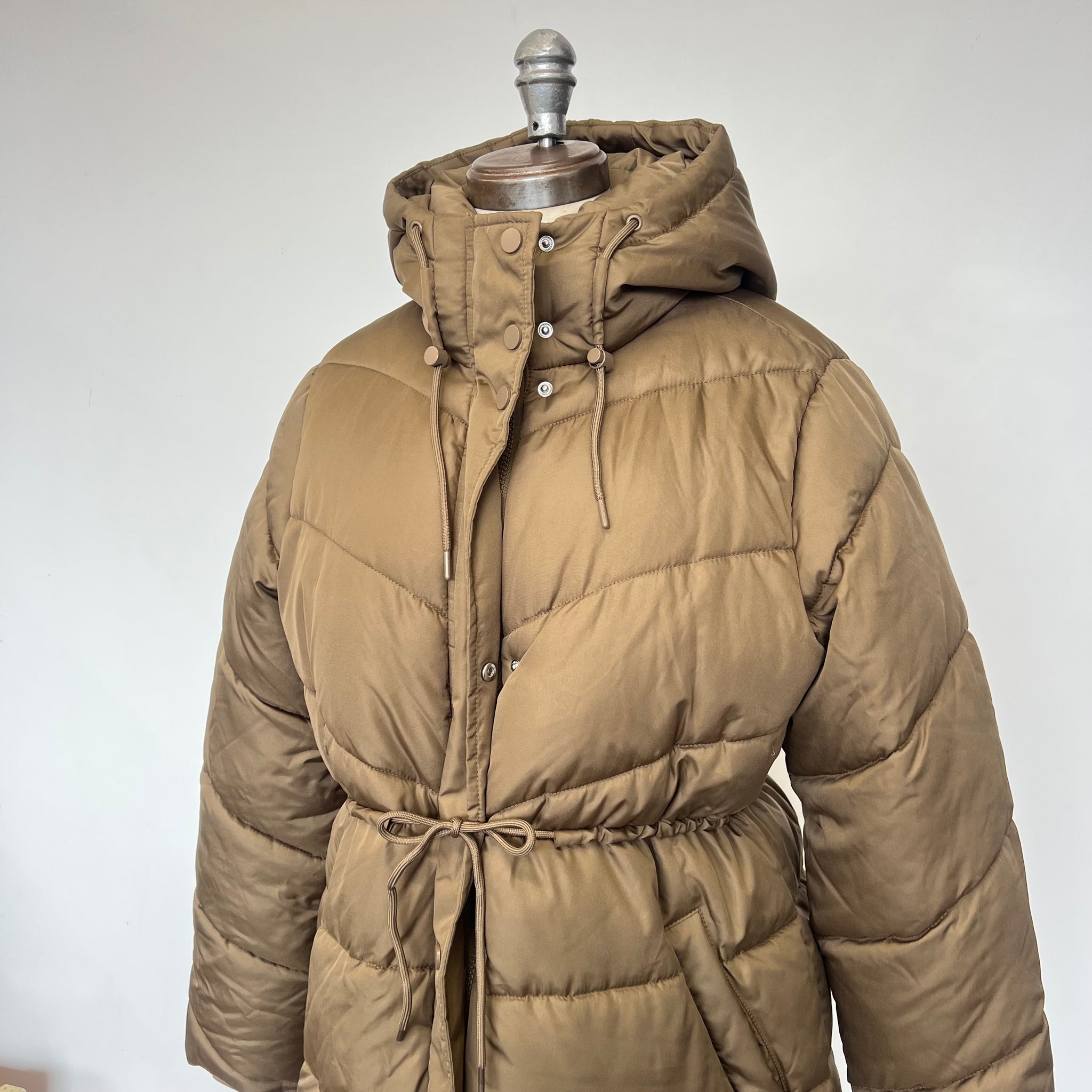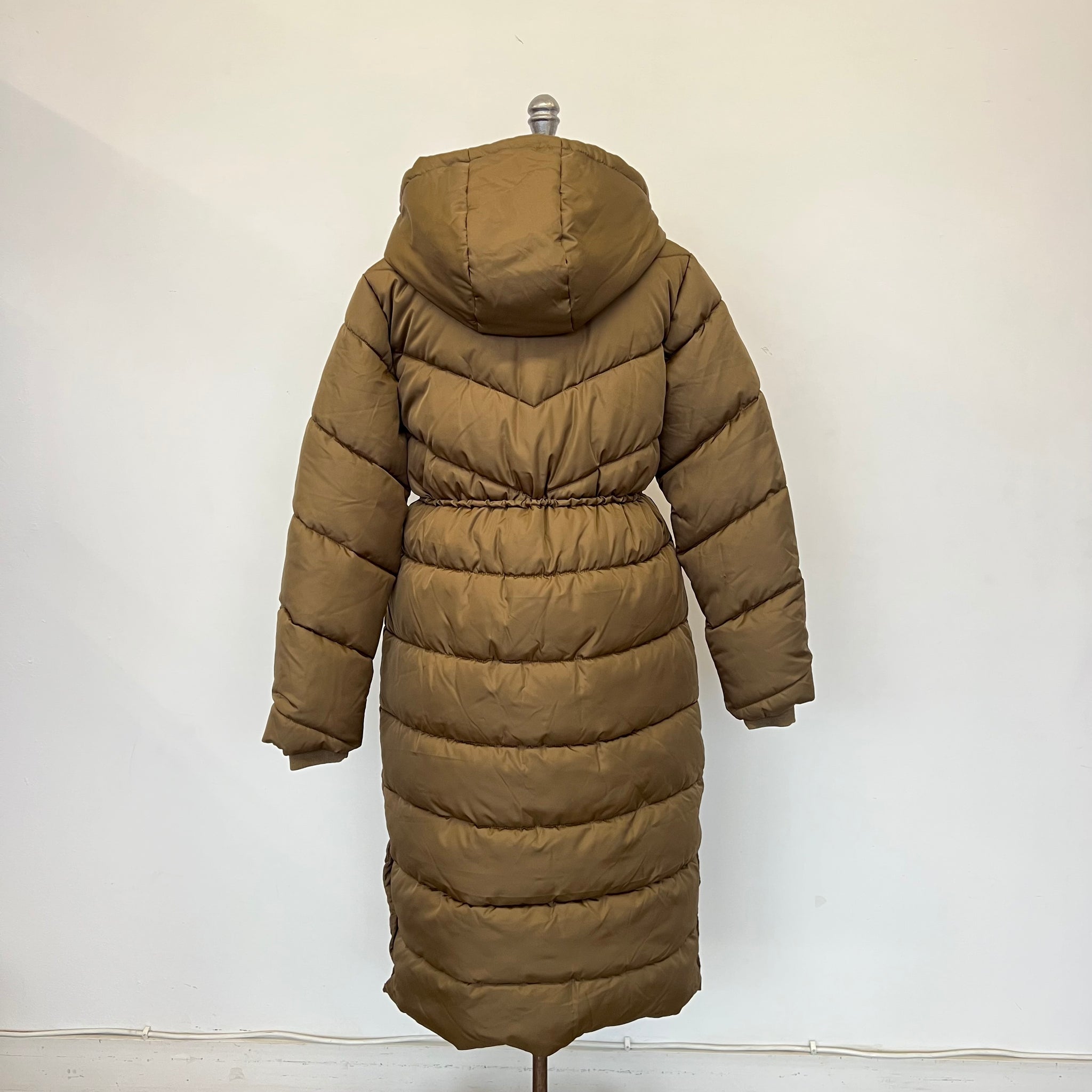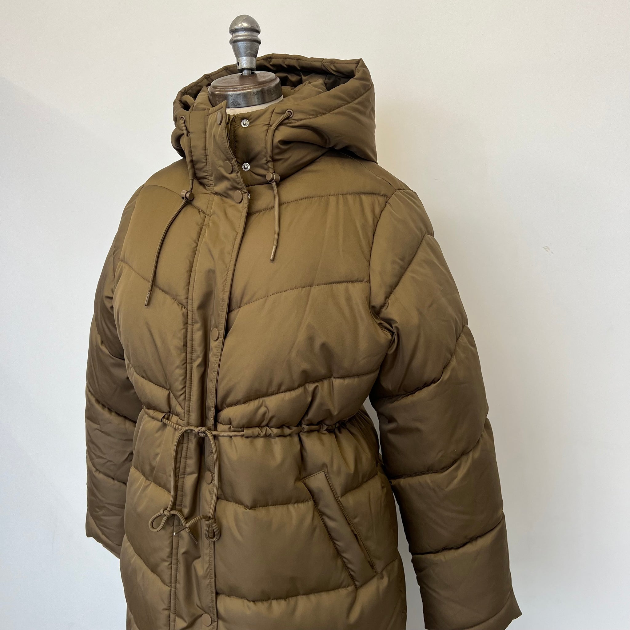 Manteau long matelassé de la marque JDY. Avec corde ajustable au niveau de la poitrine, deux poches latérales, boutons à pression pour fentes sur les cotés, boutonnière et fermeture éclair, fermeture éclair double, capuchon avec corde pour serrer.