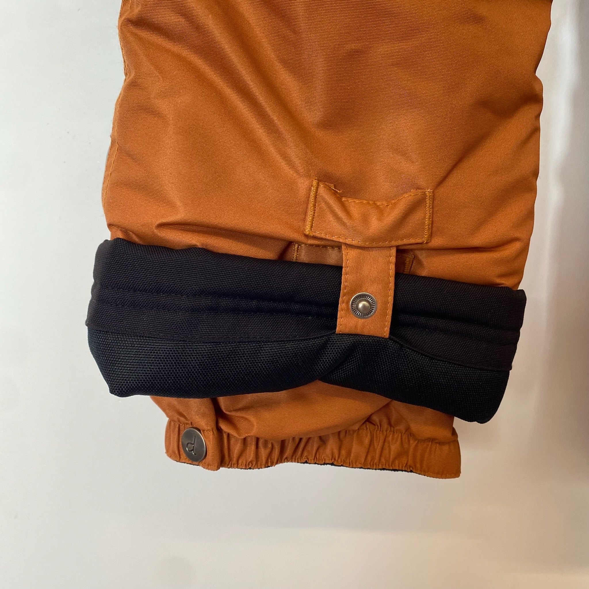 Pantalon de neige de coueur orange brûlé de la marque Deux par Deux. Chaud et résistant, conçu pour affronter l’hiver jusqu’à -30 °C (-22 °F). Isolation en fibres de polyester (170 g), tissu imperméable (5000 mm) et respirant (5000 g/m²/24h), idéal pour les activités hivernales. Résistance à l'usure : Jusqu’à 30 000 frottements. Traitement déperlant : BIONIC-FINISH® ECO, sans fluorocarbones (PFAS, PFOS, PFOA).