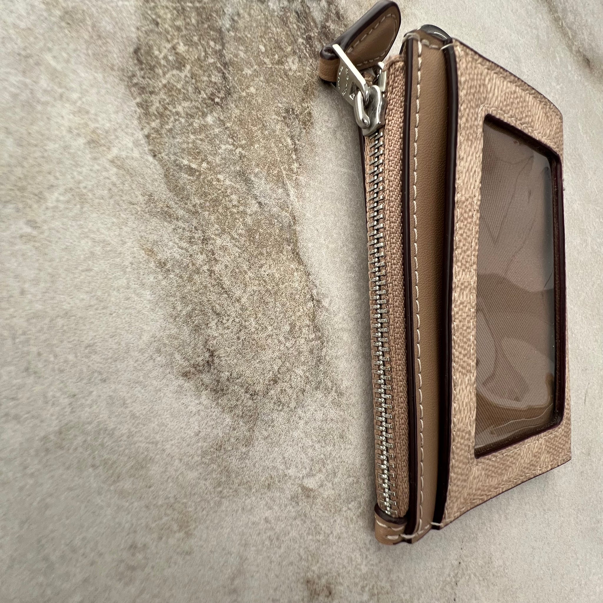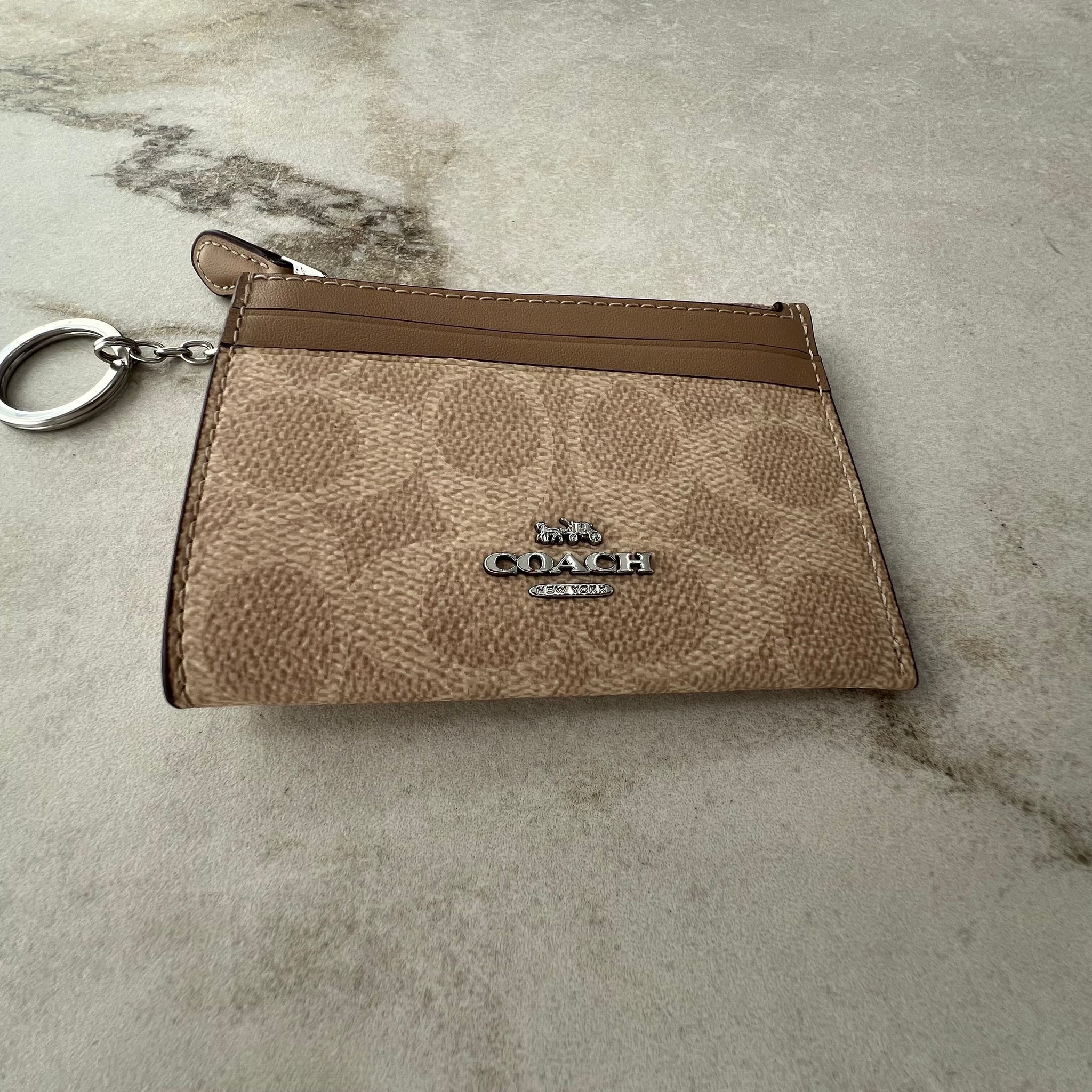 Petit porte-monnaie de la marque Coach. Avec un compartiment zappé et 3 fentes pour cartes.