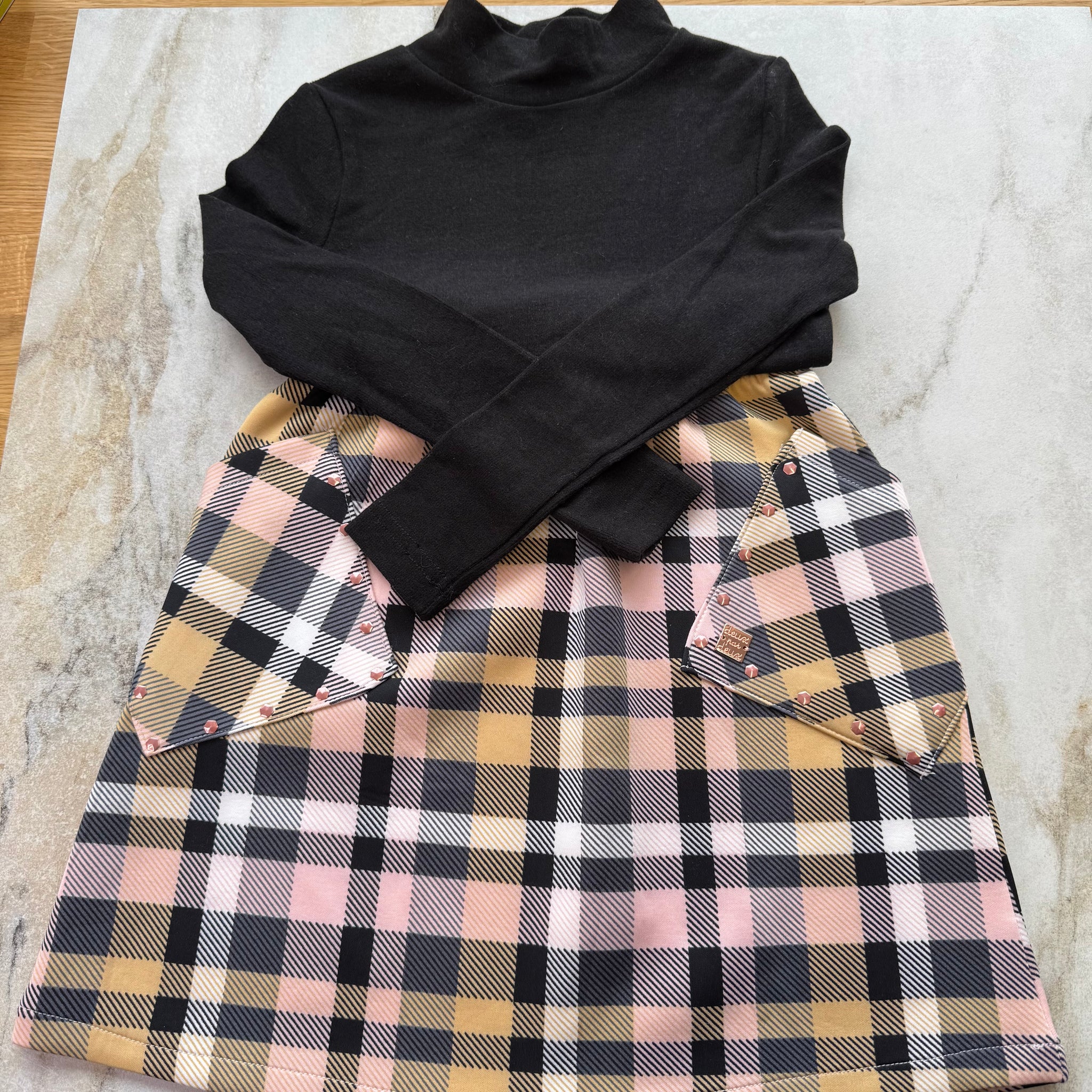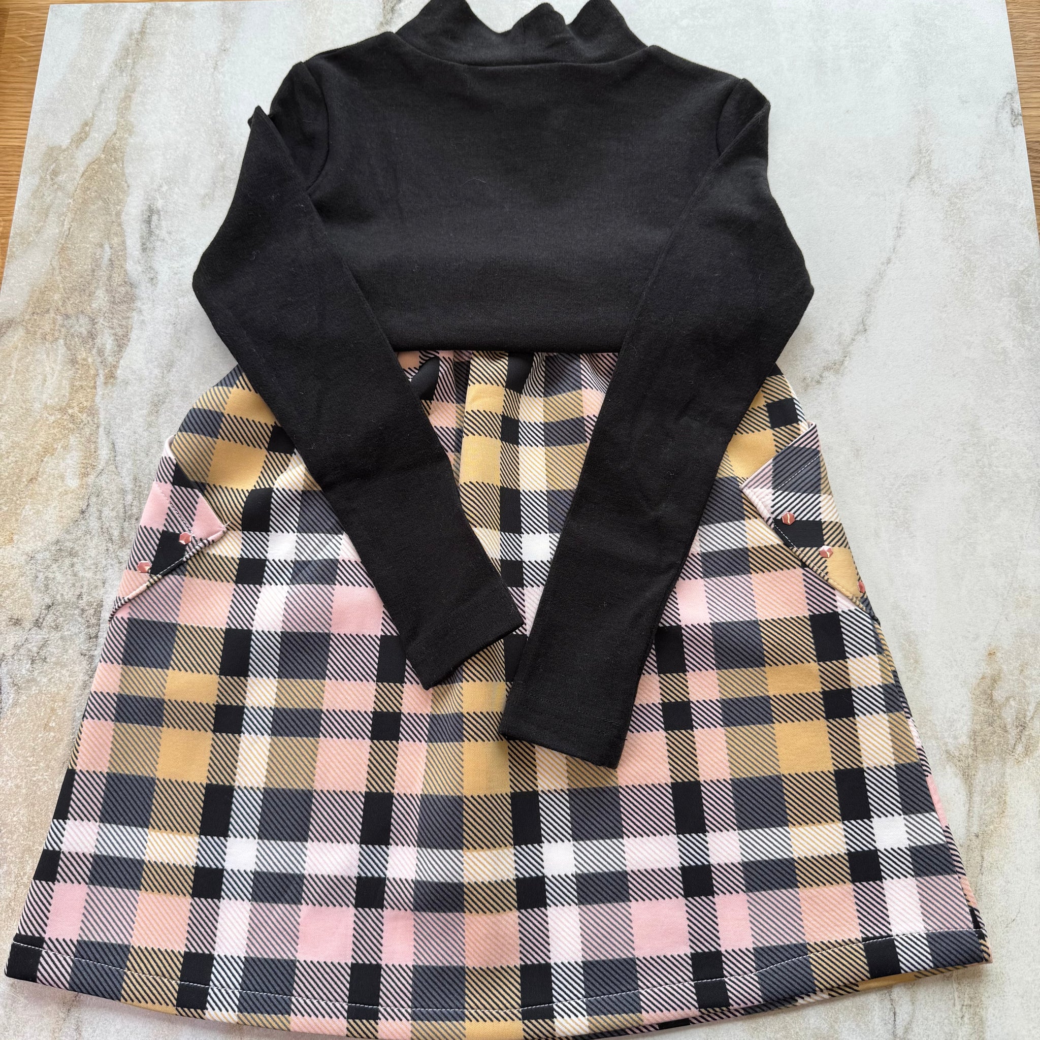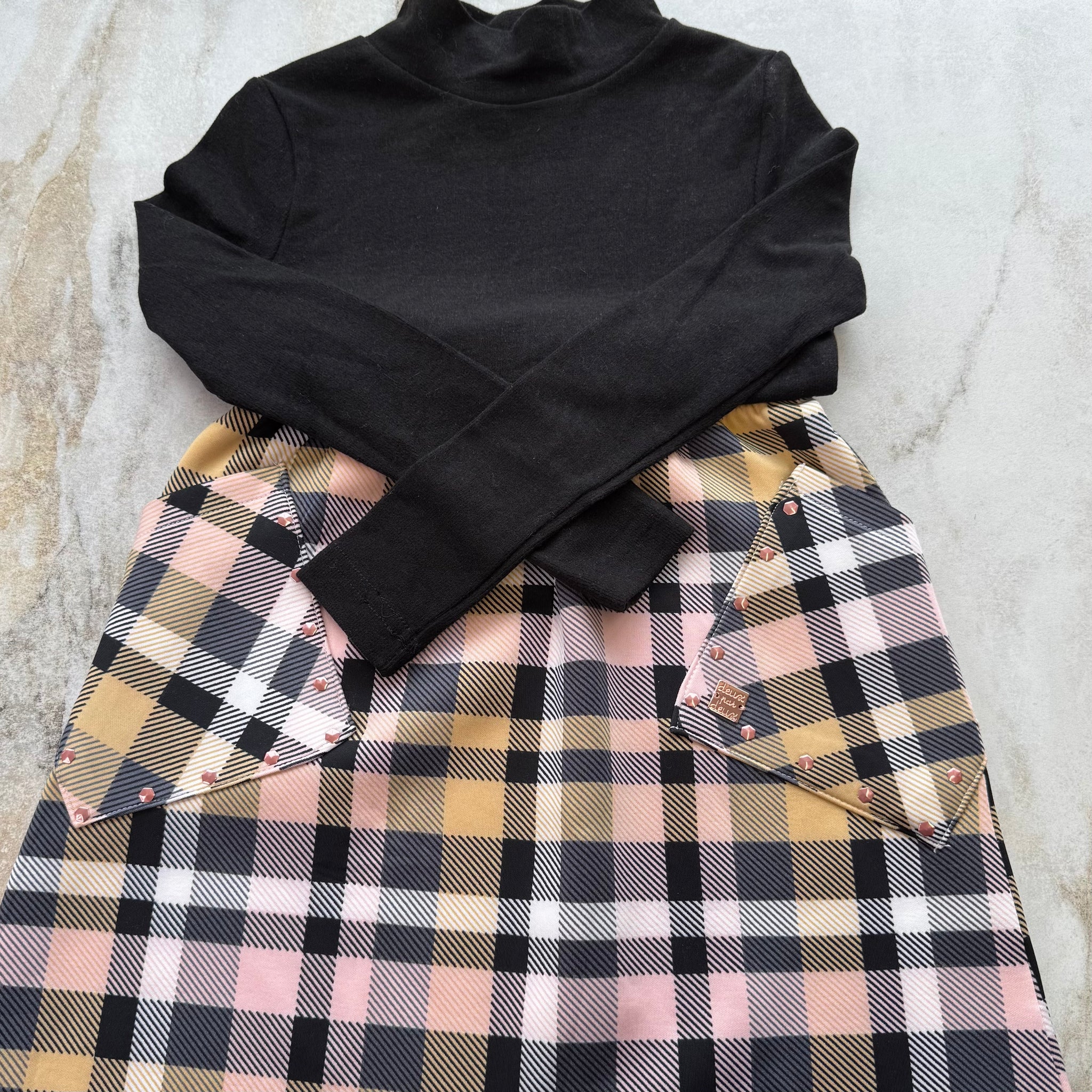 Robe festive de la marque Deux par Deux à manches longues, à carreaux avec détails rose gold aux poches.