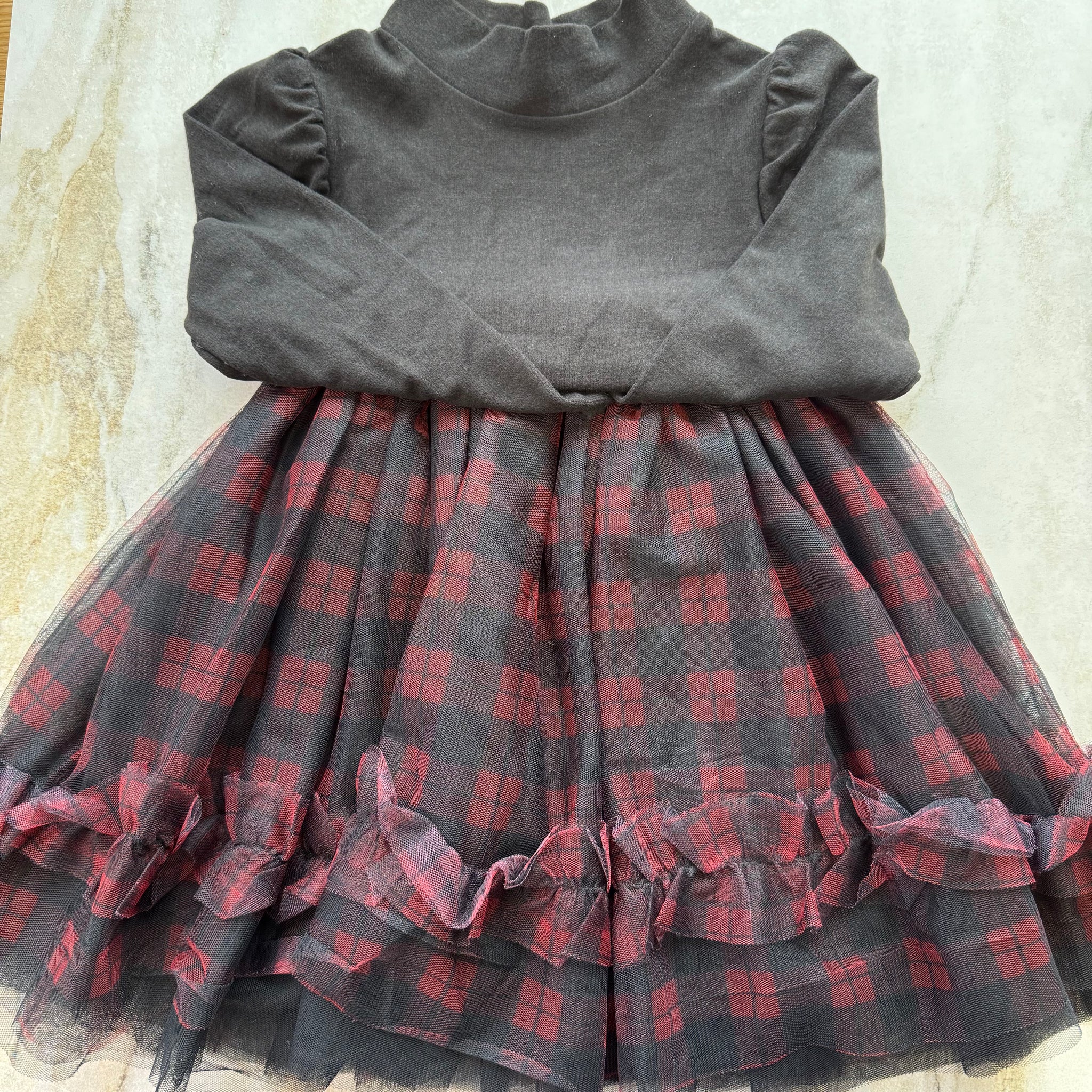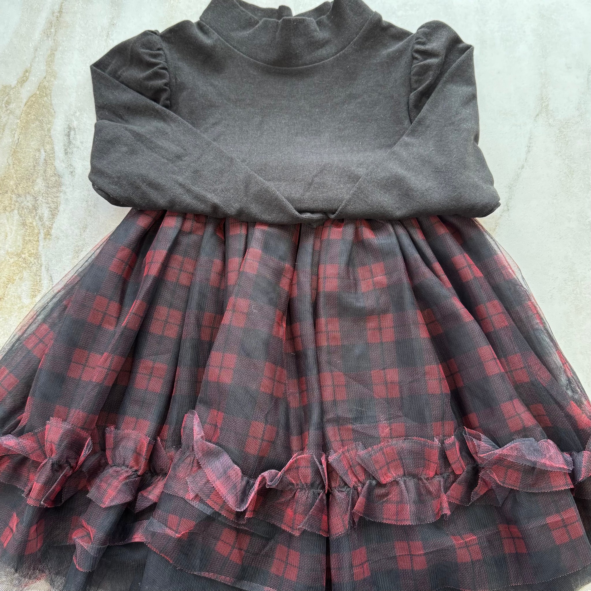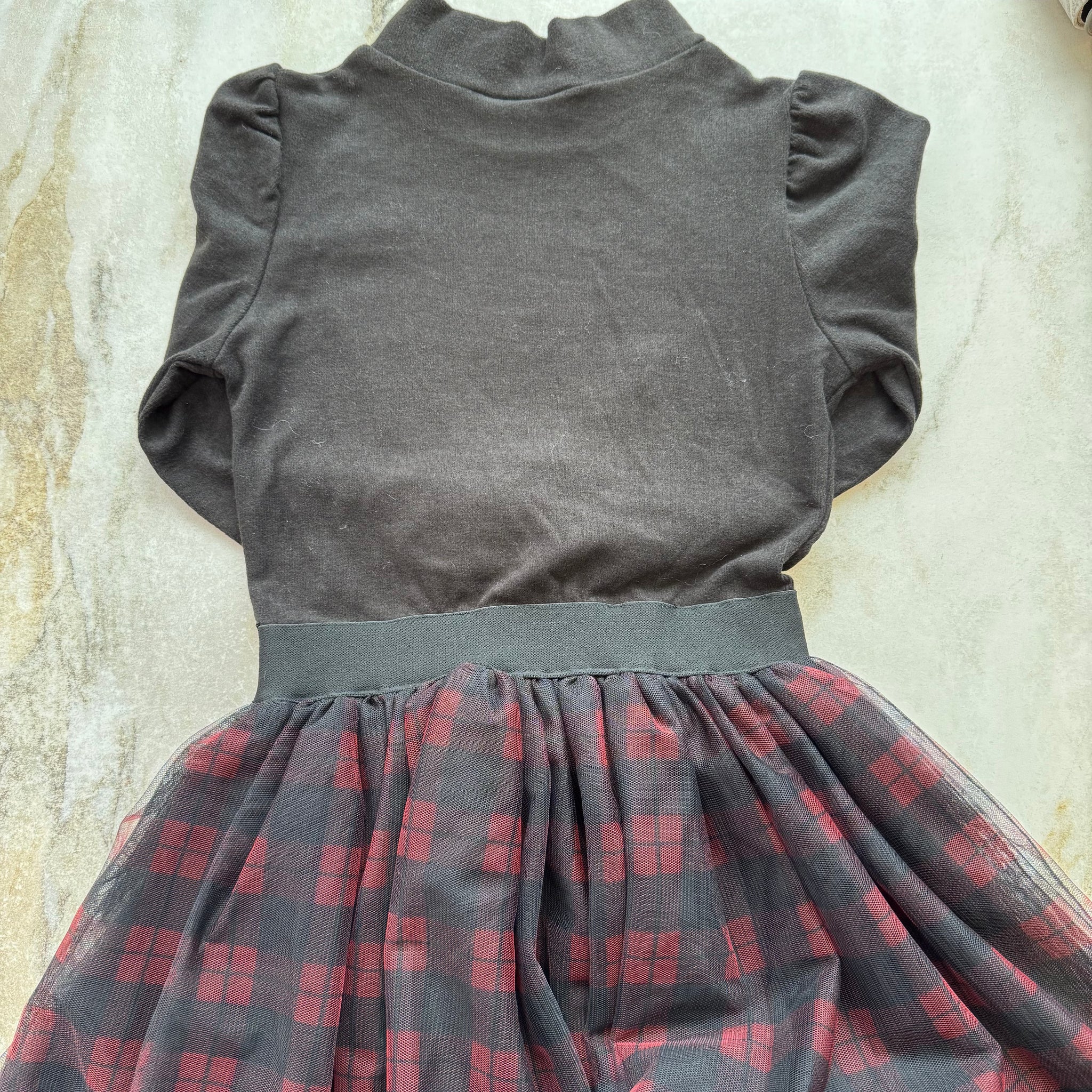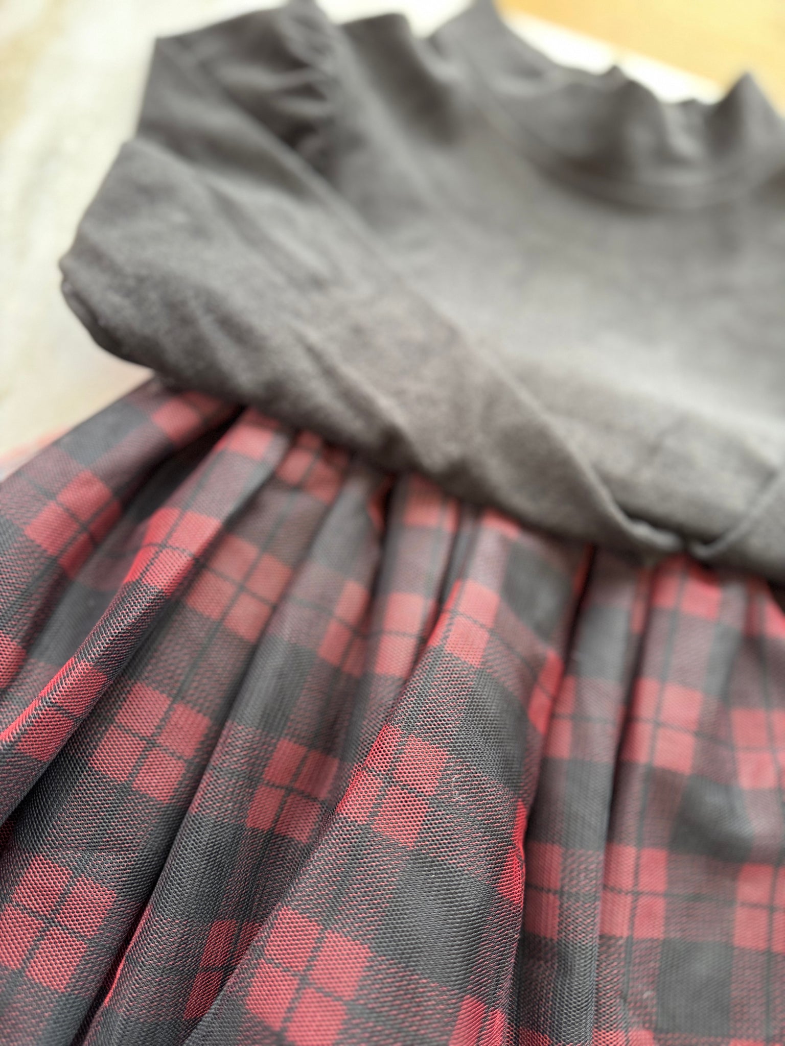 Robe festive à manches longues, crinoline à doublure, motif à carreaux rouge