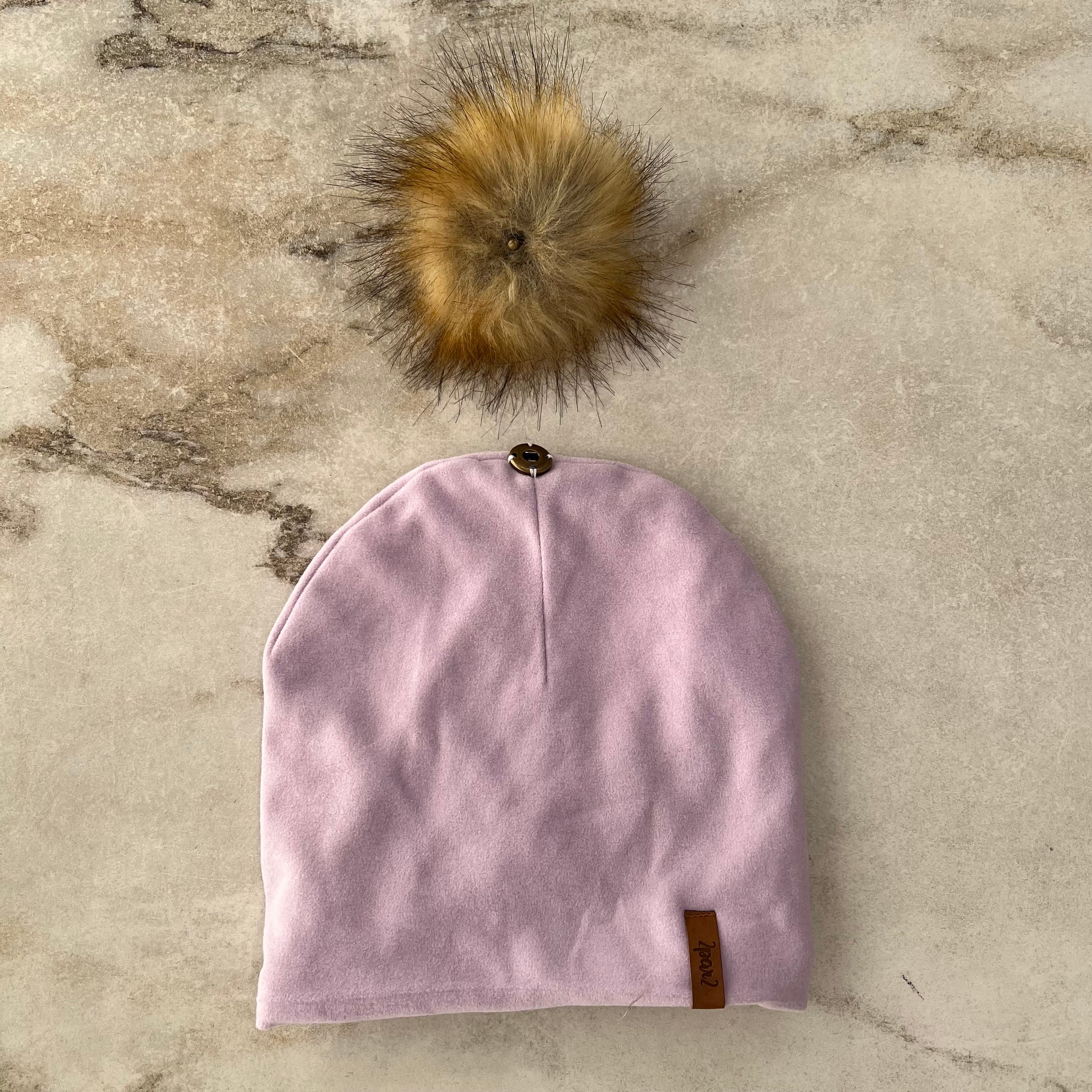 Tuque en jersey doux avec pompon amovible avec un bouton pression. Avec patch logo sur l'ourlet. Doublure en polar.